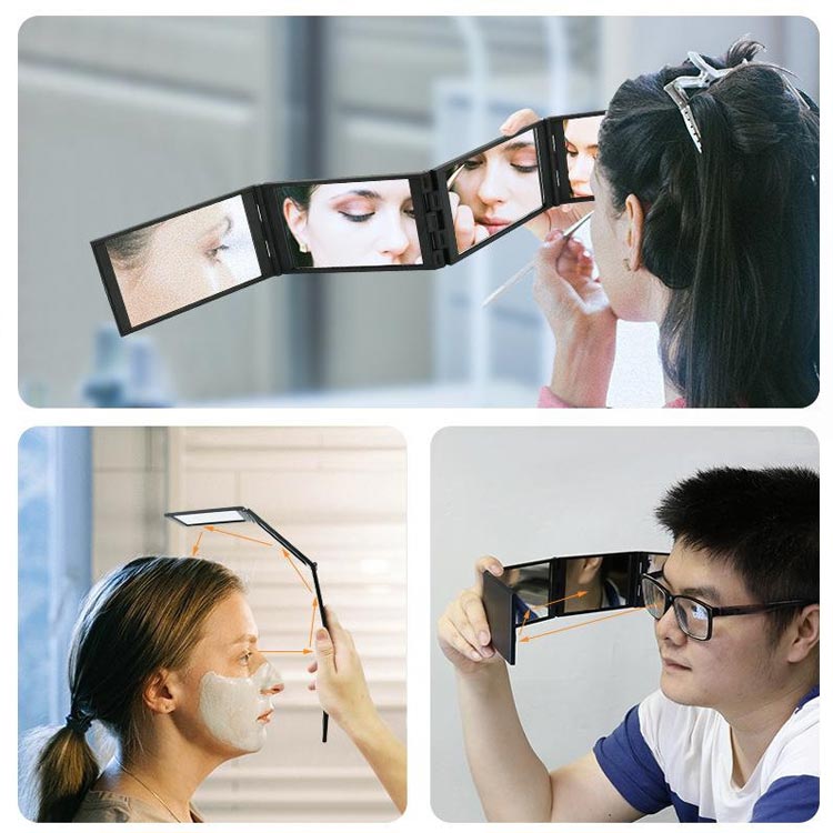 4面どこでもミラー 鏡 スタンドミラー 4面ミラー ハンドミラー 4面鏡 コンパクト 折りたたみ 化粧鏡 卓上ミラー ハンディミラー ヘアチェック ヘアカラー 頭頂部 つむじ うなじ 襟足 白 後頭部