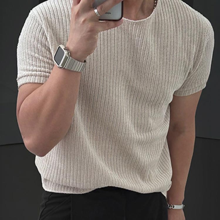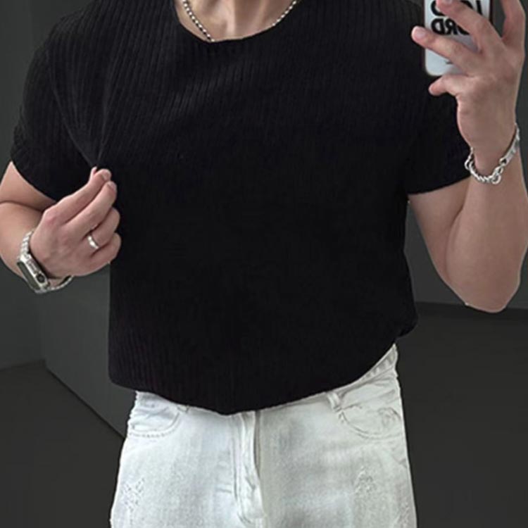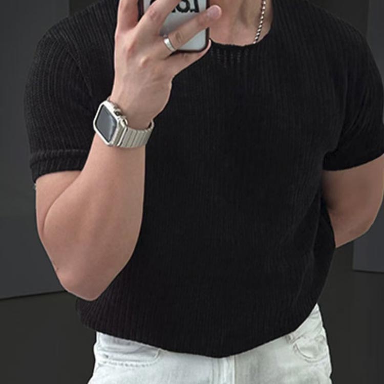 メンズ トップス ゆったり 無地 快適 薄手 プルーオーバー 透かし編み サマーニット 涼しい 大きいサイズ 接触冷感 レイヤード 半袖tシャツ キレイめ 上品 春夏 サマーセーター カット 柔らかい