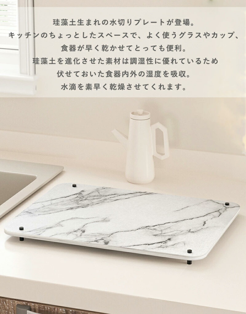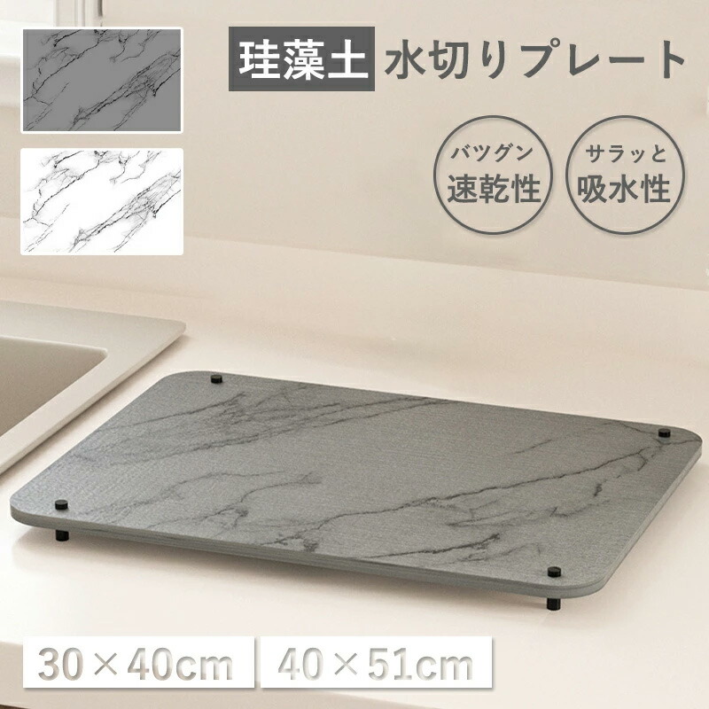 珪藻土 水切りプレート スタンド付き キッチン用品 食器 調理器具 続々入荷中 大理石ホワイト 大理石グレー S-30x40cm L-40x51cm