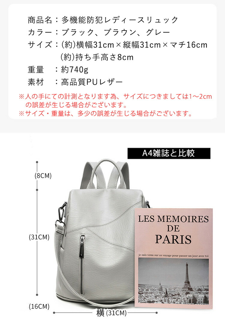 新色入荷 防犯 リュック レディース バッグ 小物 ブランド雑貨 続々登場 ブラック グレー ブラウン ダークグリーン