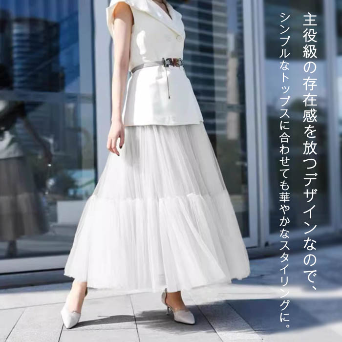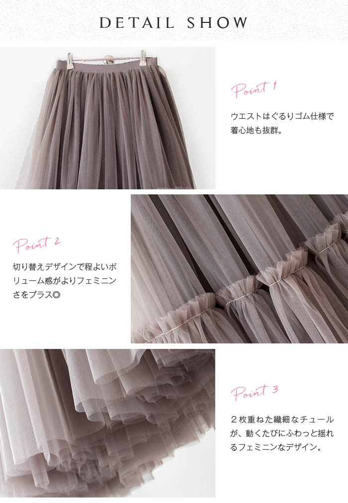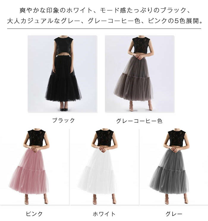 チュールスカート レディース 春 秋 レディースファッション 人気 ホワイト ブラック グレーコーヒー色 グレー ピンク