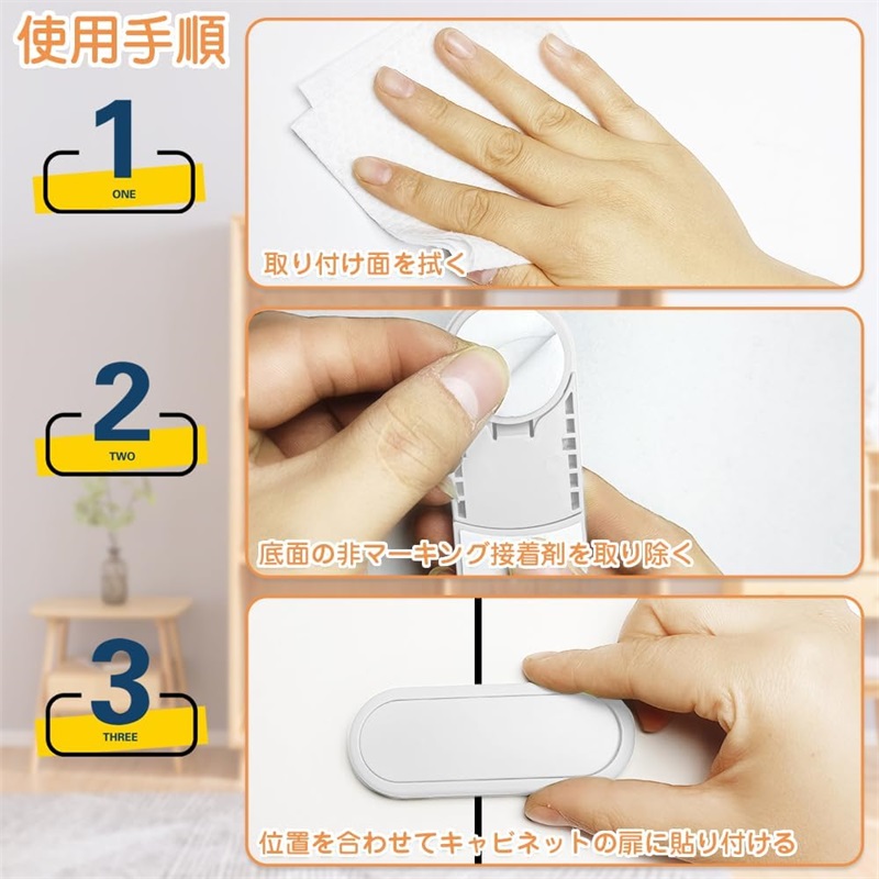 幅広い用途:引き出し、キャビネット、冷蔵庫、キャビネット、本棚などの場所での使用に適しています。子供やペットによる事故を防ぎます。