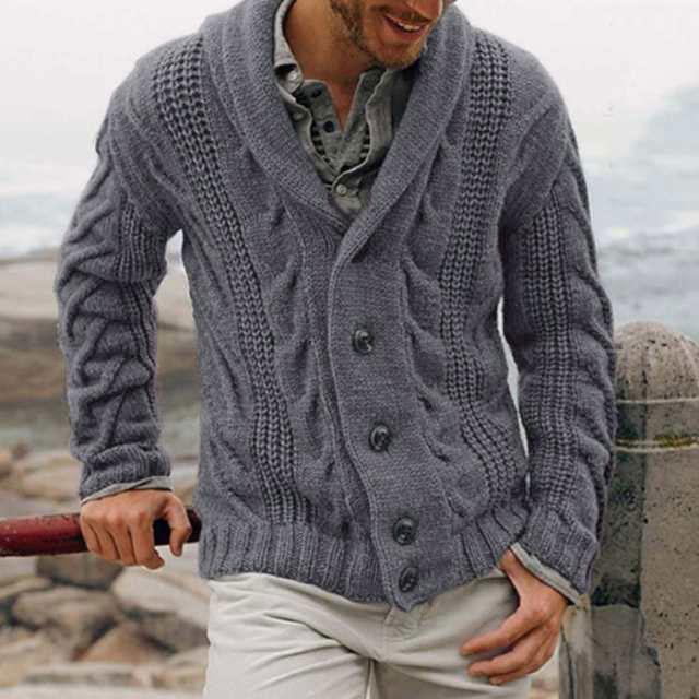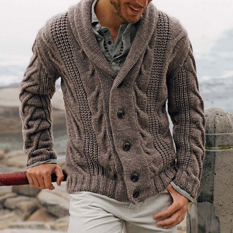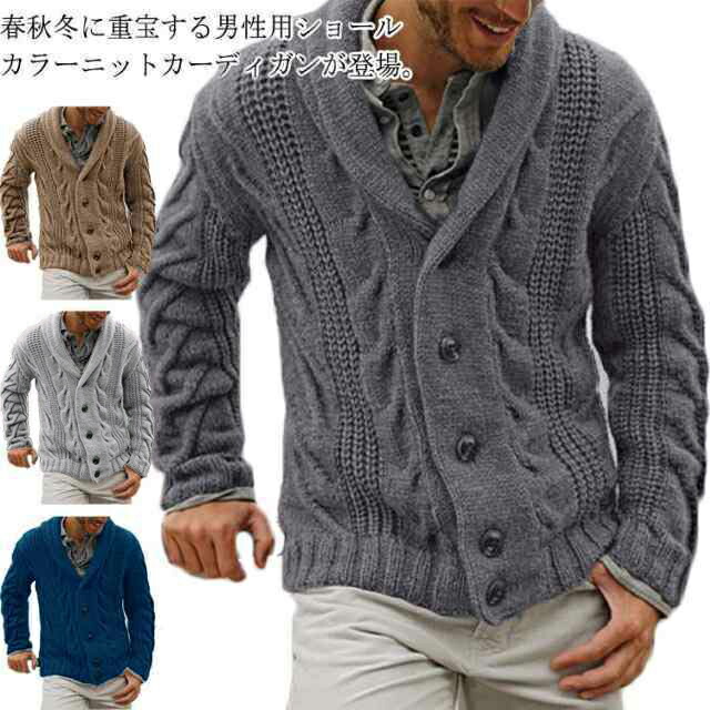 ボタン式 ケーブル編み メンズファッション メンズカーディガン ニットカーディガン 長袖 ショールカラー ショール襟 カーディガン 秋冬 寒さ対策 プレゼント ざっくりニット 厚手 男性