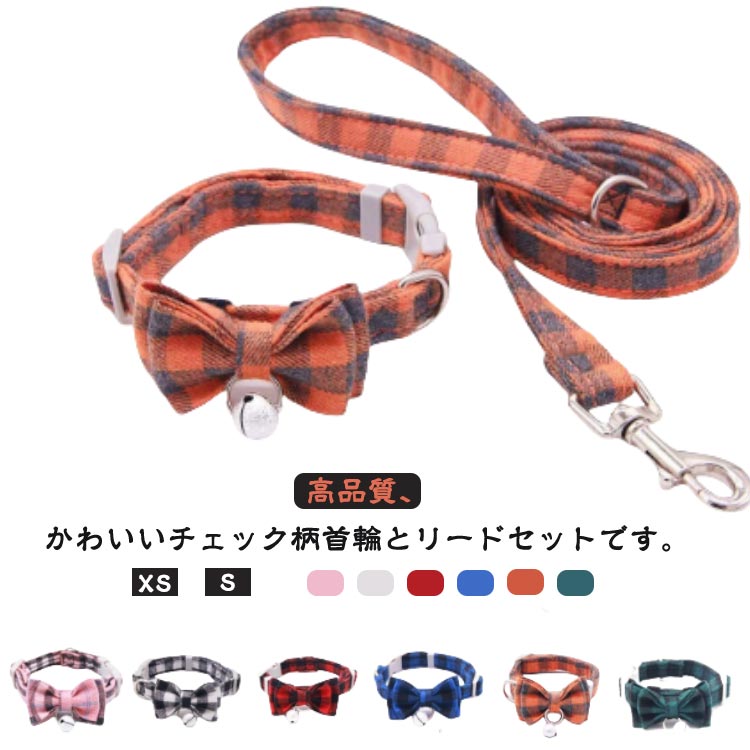 首輪 猫 小型犬 首に優しい リード付きセット くびわ おしゃれ リボン セーフティバックル チェック柄 ネコ ねこ 超小型犬 安全 かわいい 蝶ネクタイ キャット ネコグッズ 猫グッズ 安全バックル