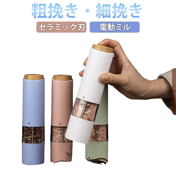 ソルト&ペッパー ペッパーミル 木目調 北欧 1本 単品 調味料 電動ミル スパイスミル マルチミル セラミック刃 乾電池 胡椒 ブラックペッパー 香辛料 コンパクト 粗挽き 細引 おしゃれ