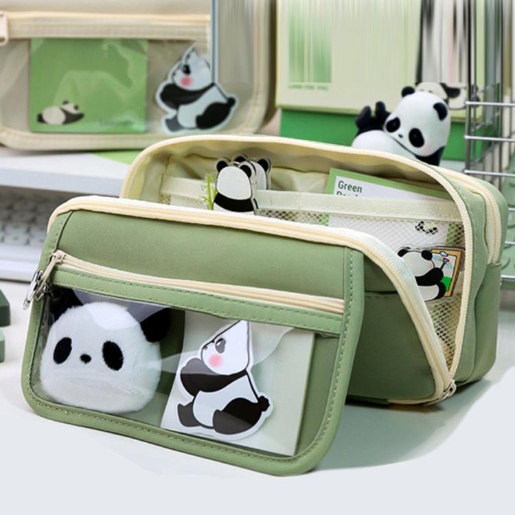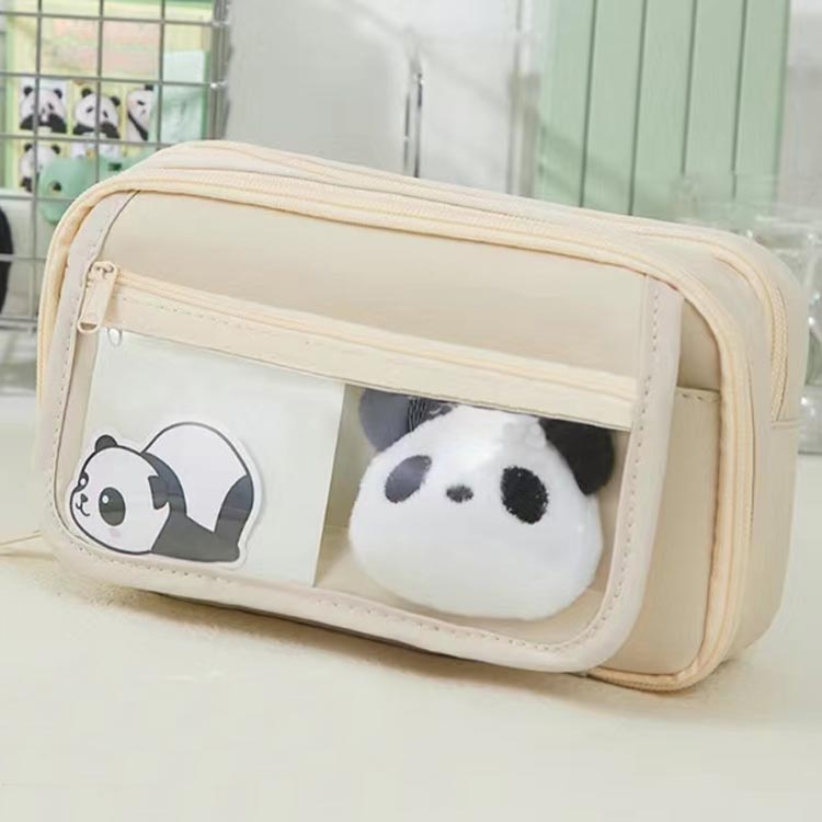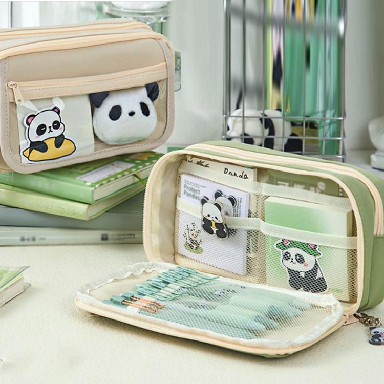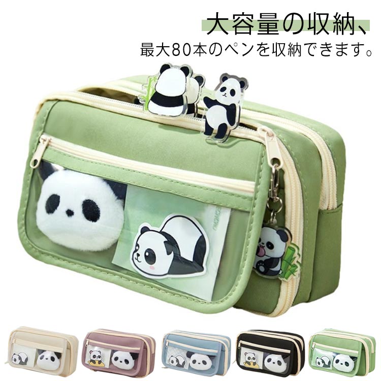 可愛いパンダピン、パンダクリップ、パンダステッカー、パンダペンが付いた大きなペンケースをお届けします。