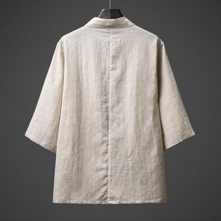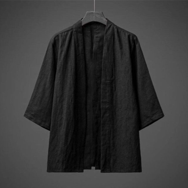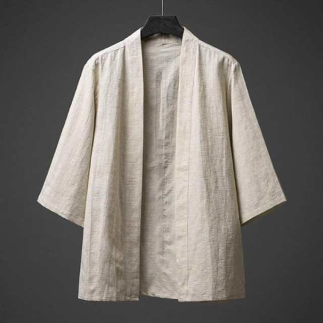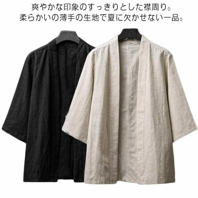 綿麻 リネン 着物 無地 七分袖 花火大会 トップス メンズ サマーカーディガン 和風 カジュアル 浴衣風 部屋着 開襟シャツ ノーカラージャケット 男性 アウター 上着 カーディガン 羽織 浴 夏物