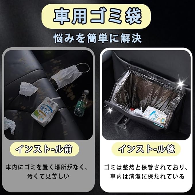 【大容量・収納力抜群】車内のゴミをしっかりと整理でき、常に清潔で整った状態を保つことができます。耐荷重は5kgで、ゴミ箱としてだけではなく、小物入れ収納としても使えます。