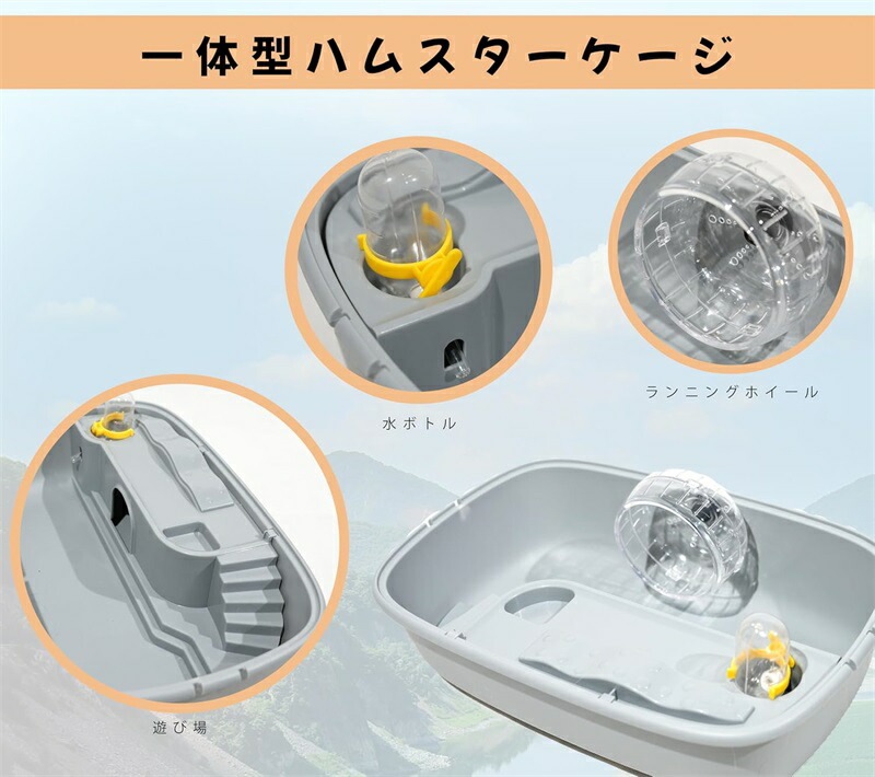 ハムスター飼育セット 製品にはウォーターボトルとランニングホイールが付属しており、一つでハムスターを飼うのに十分な機能を備えています。
