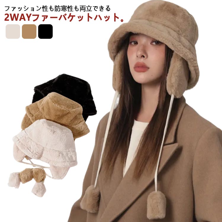 耳付き 帽子 ファーハット レディース バッグ 小物 ブランド雑貨 続々登場 ブラック アイボリー キャメル