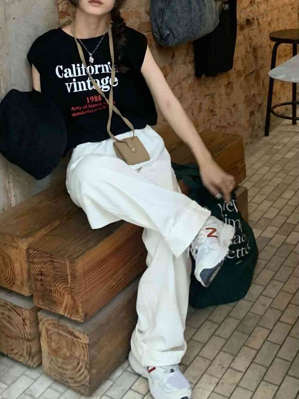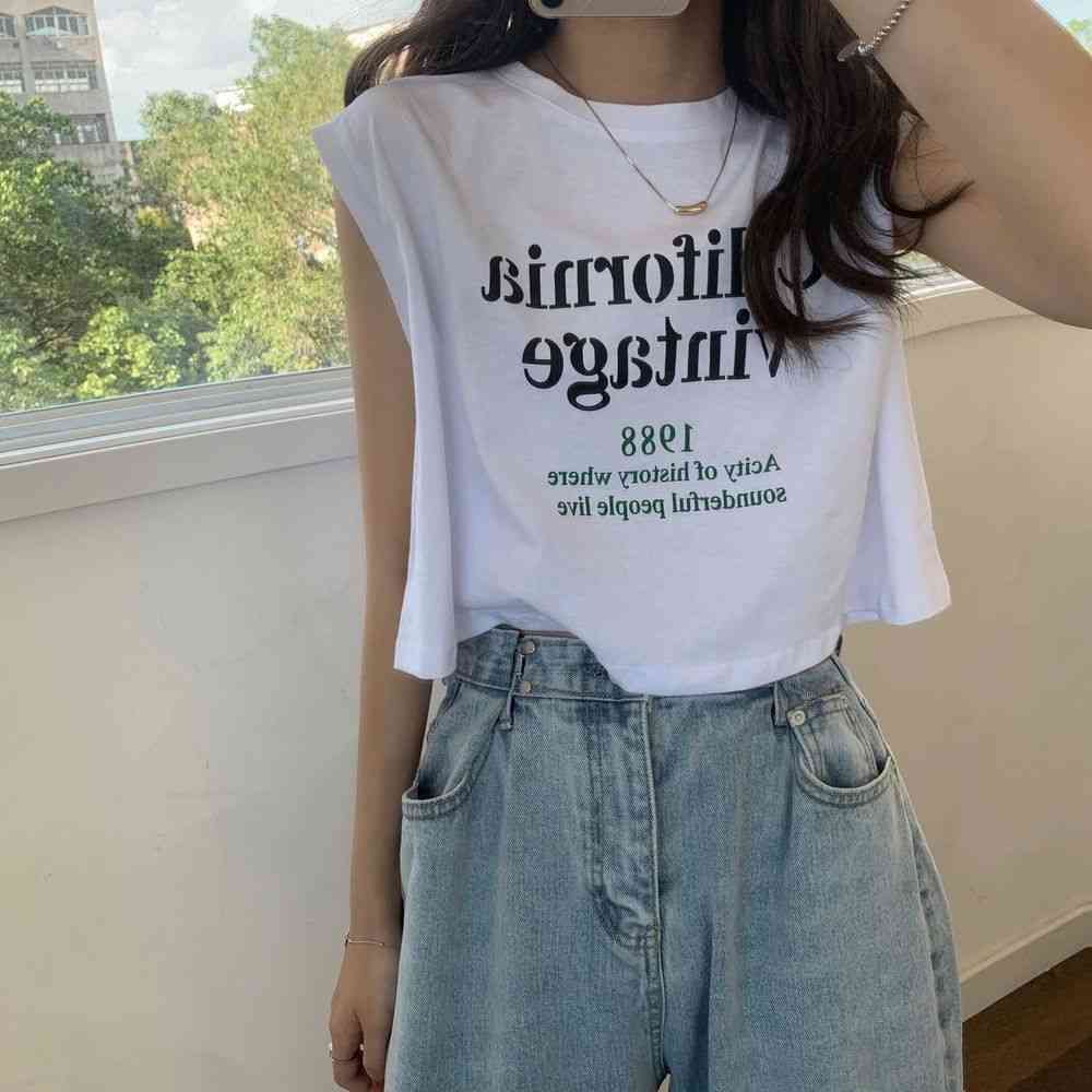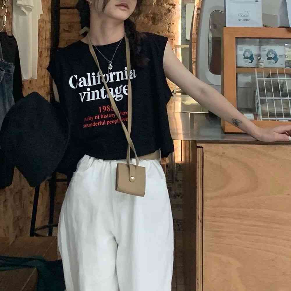 タンクトップレディースTシャツノースリーブUネックロゴプリント