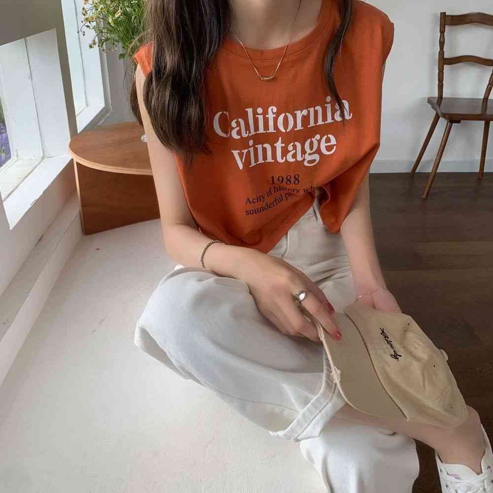 ノースリーブカットソー Tシャツ フレ レディースファッション 人気 ブラック ホワイト オレンジ S M L XL 2XL