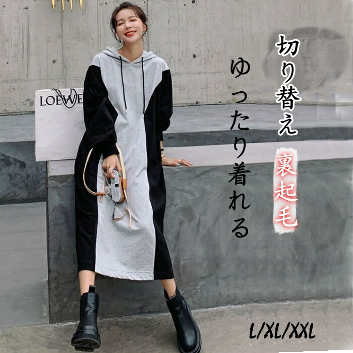 パーカー ワンピース 裏起毛 ロングワ ワンピース 続々登場 L XL XXL