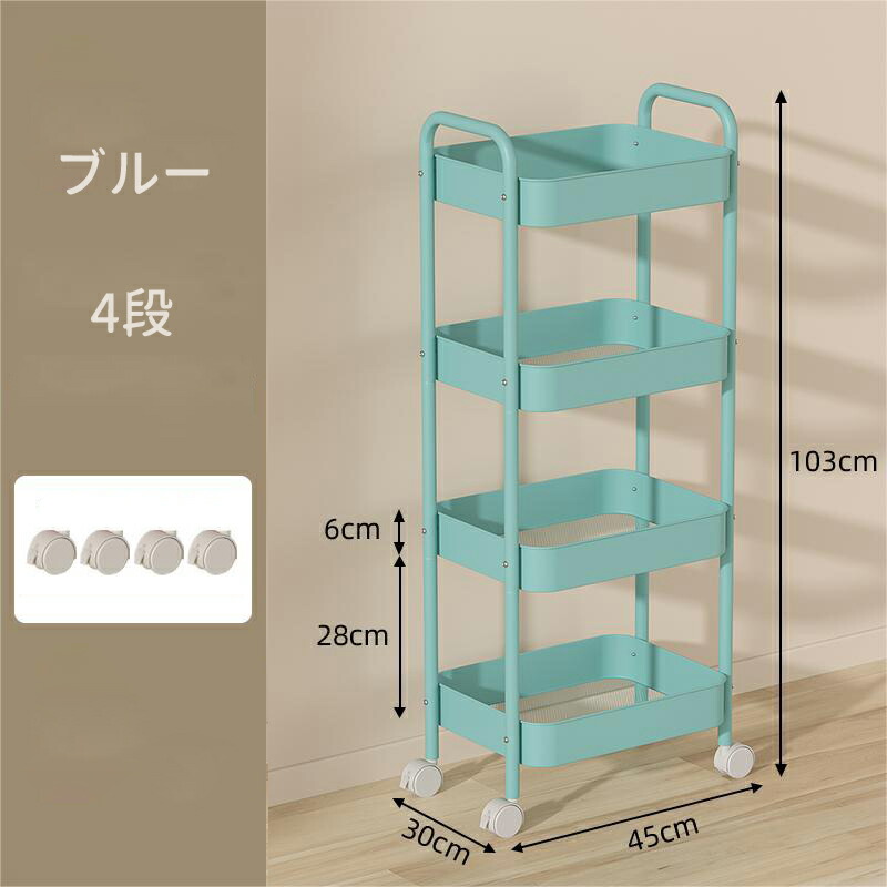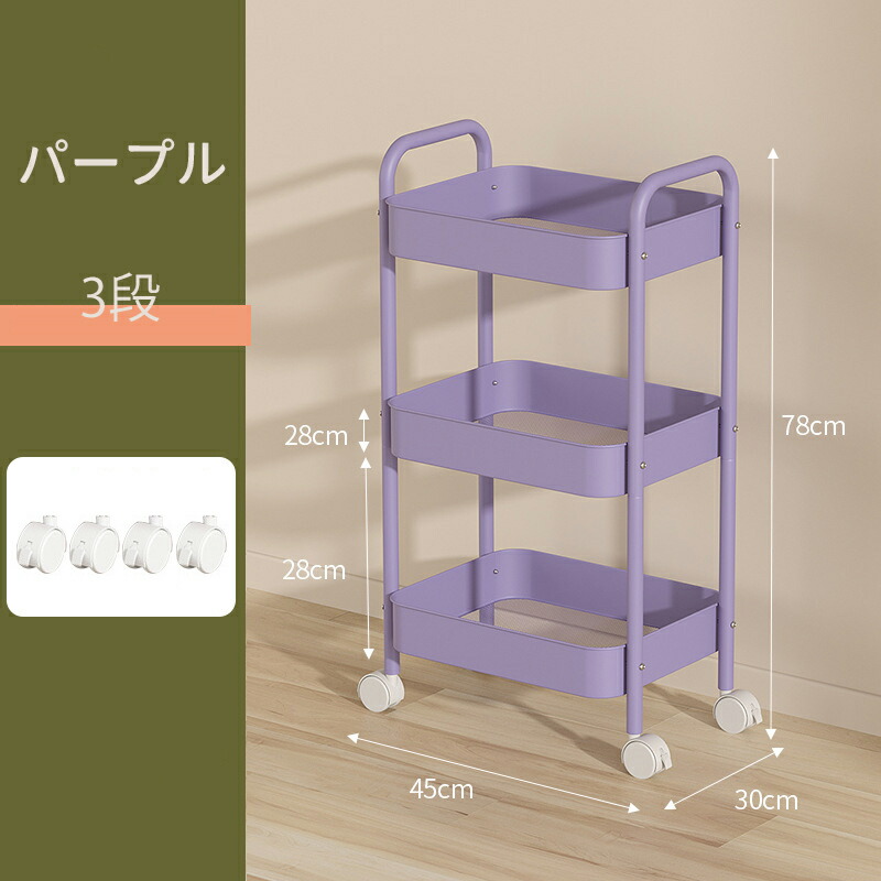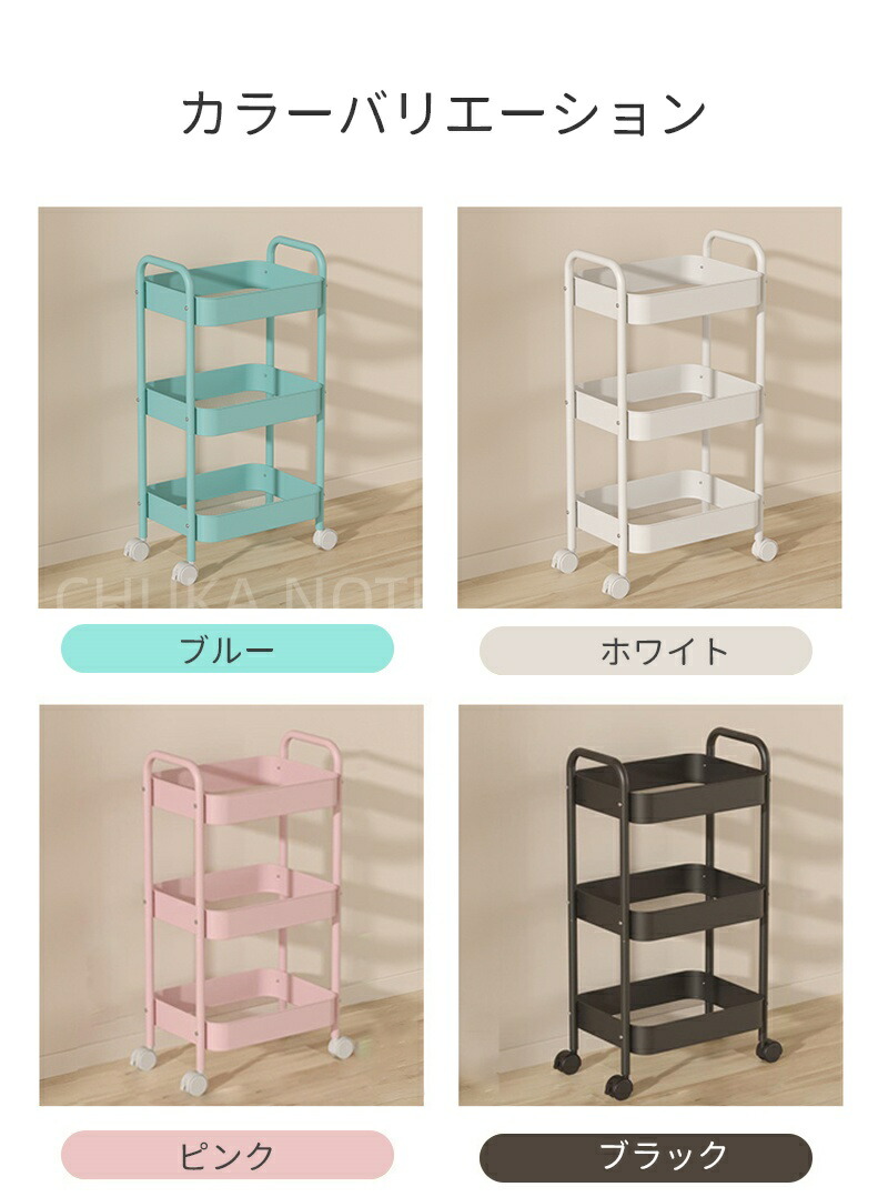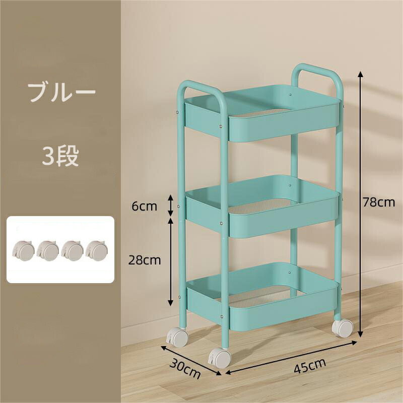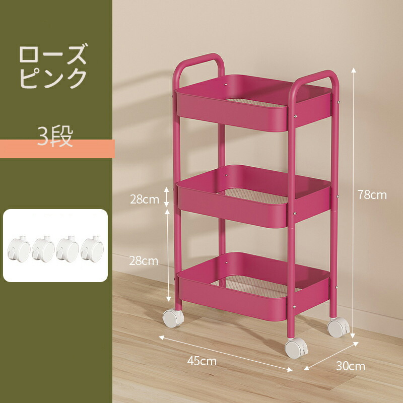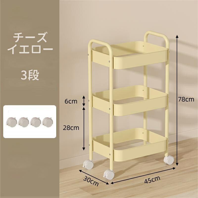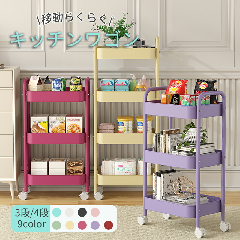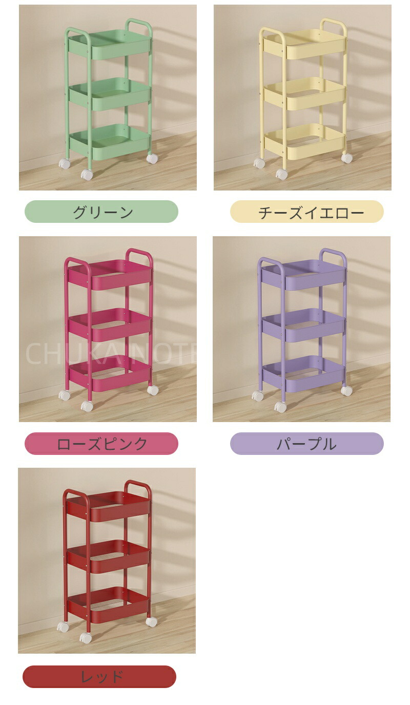 キッチンワゴン キャスター付き ワゴン 3 4 ブルー ホワイト ピンク ブラック グリーン チーズイエロー ローズピンク パープル レッド