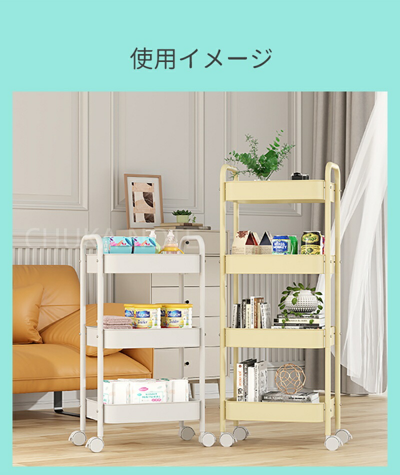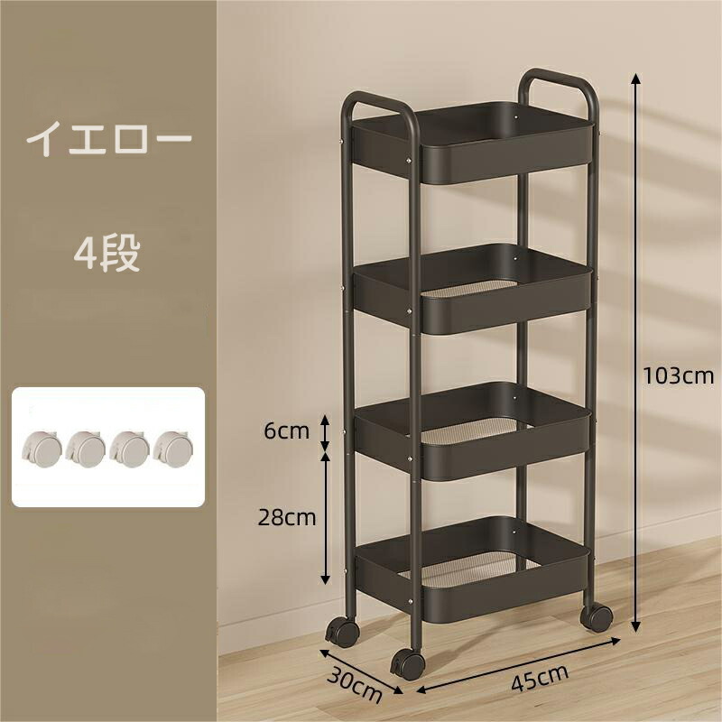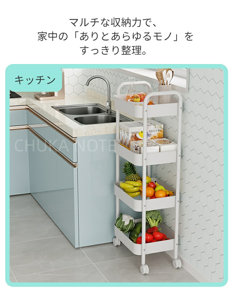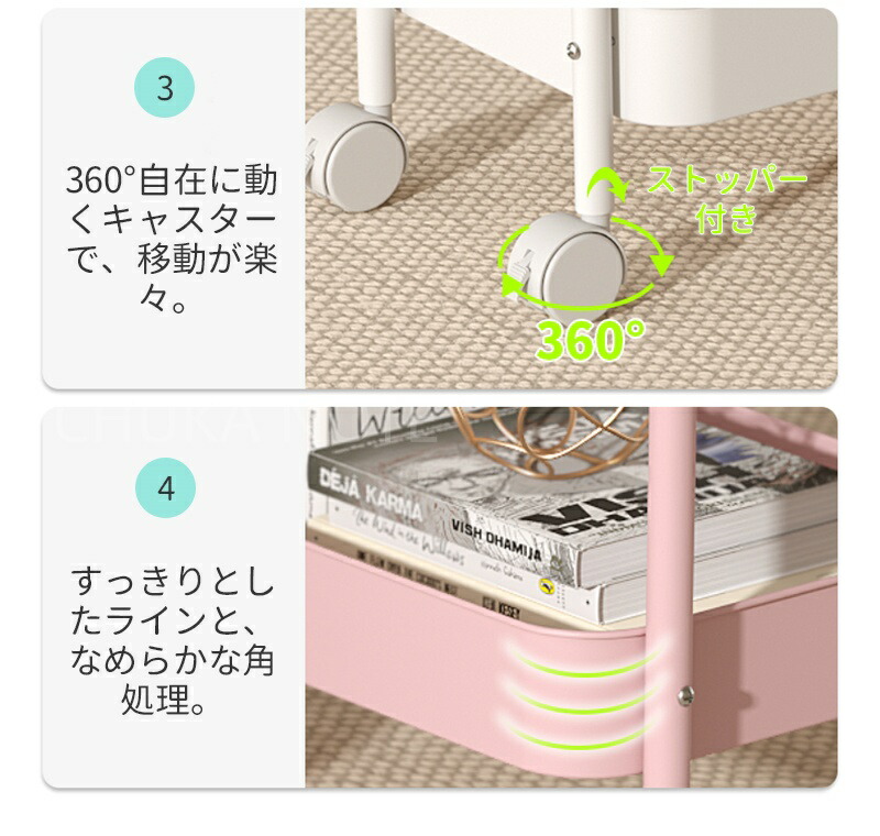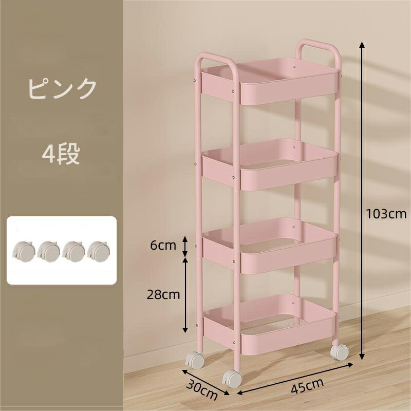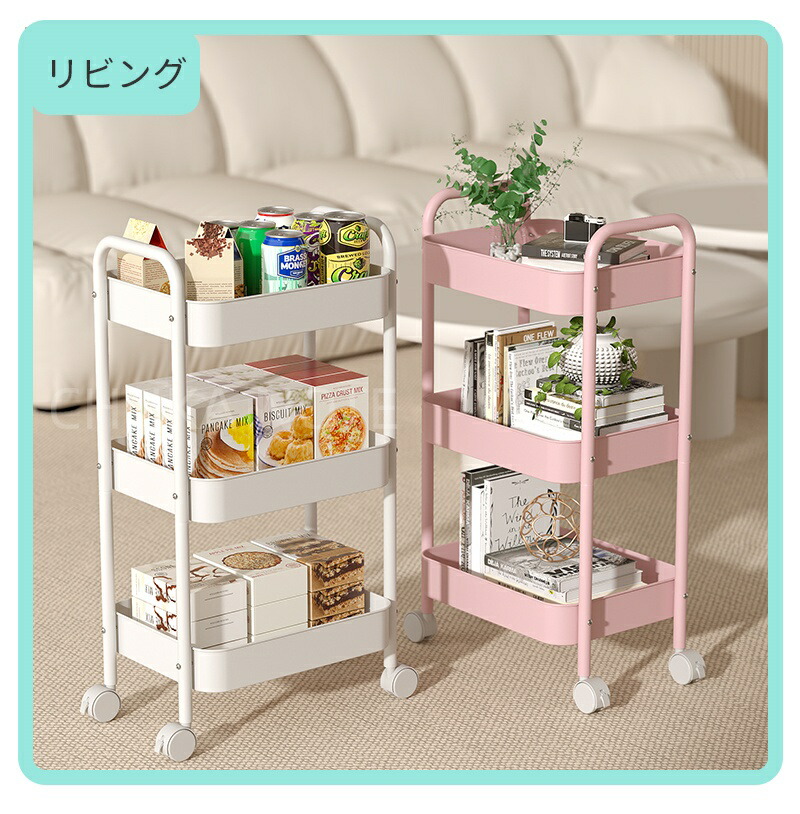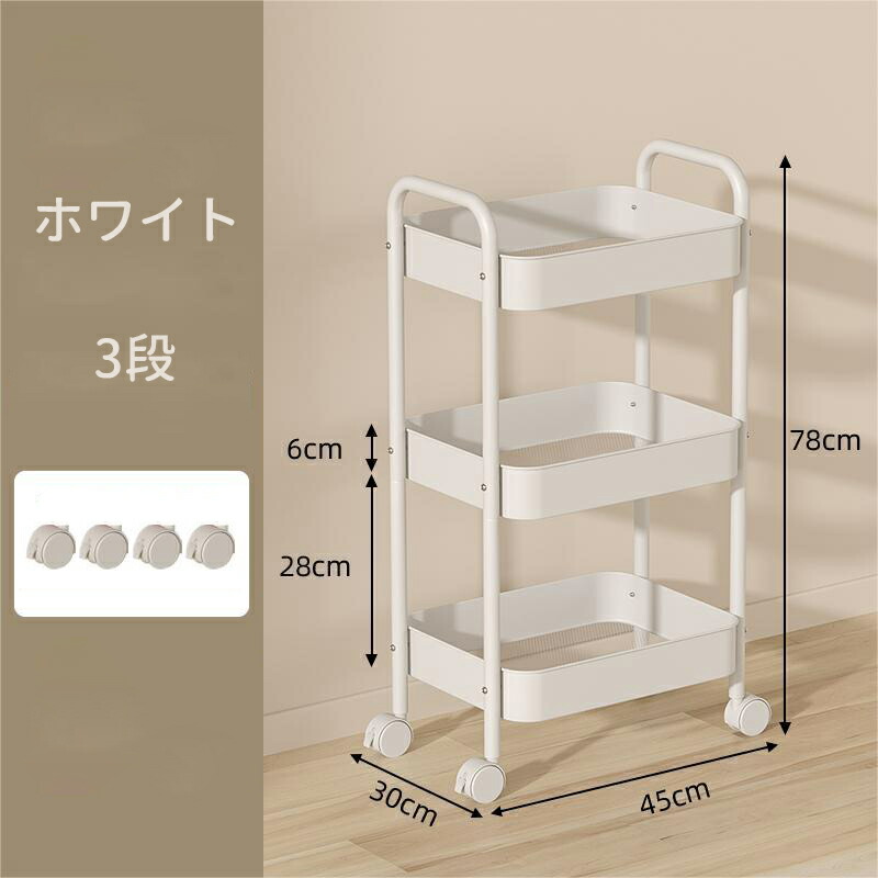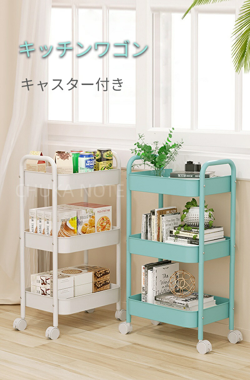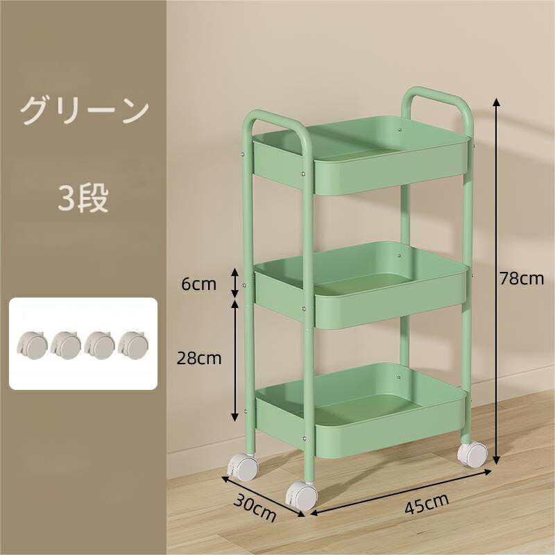 キッチンワゴン キャスター付き ワゴン 3 4 ブルー ホワイト ピンク ブラック グリーン チーズイエロー ローズピンク パープル レッド