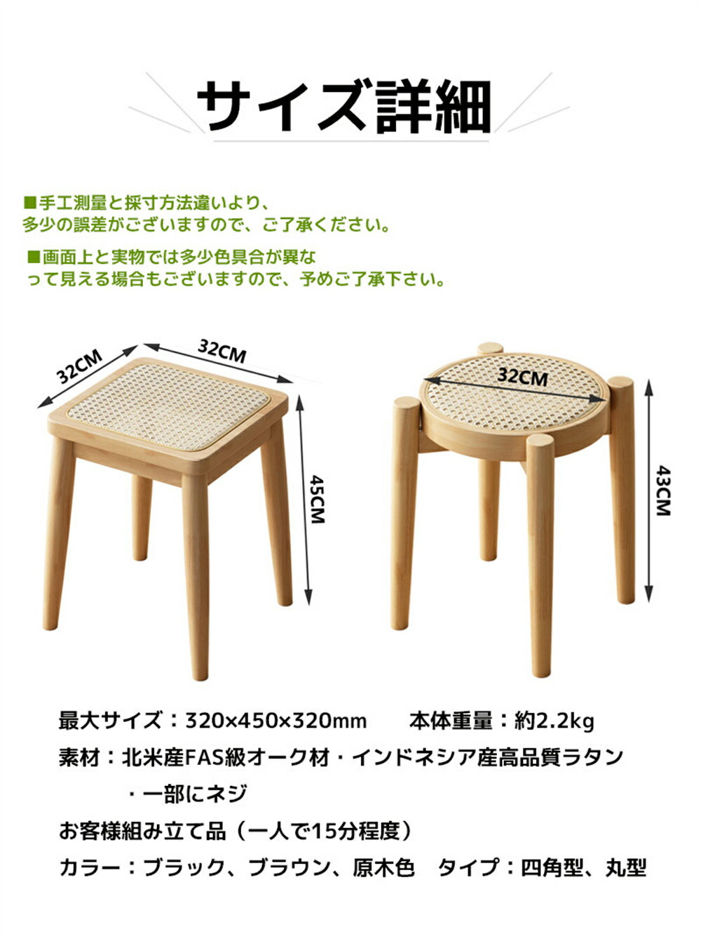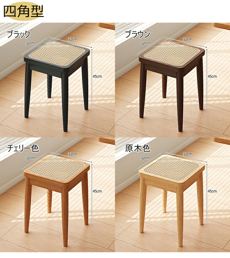 スツール ラタン ラタンチェア ラタン ブラック ブラウン チェリー色 原木色 四角型 丸型