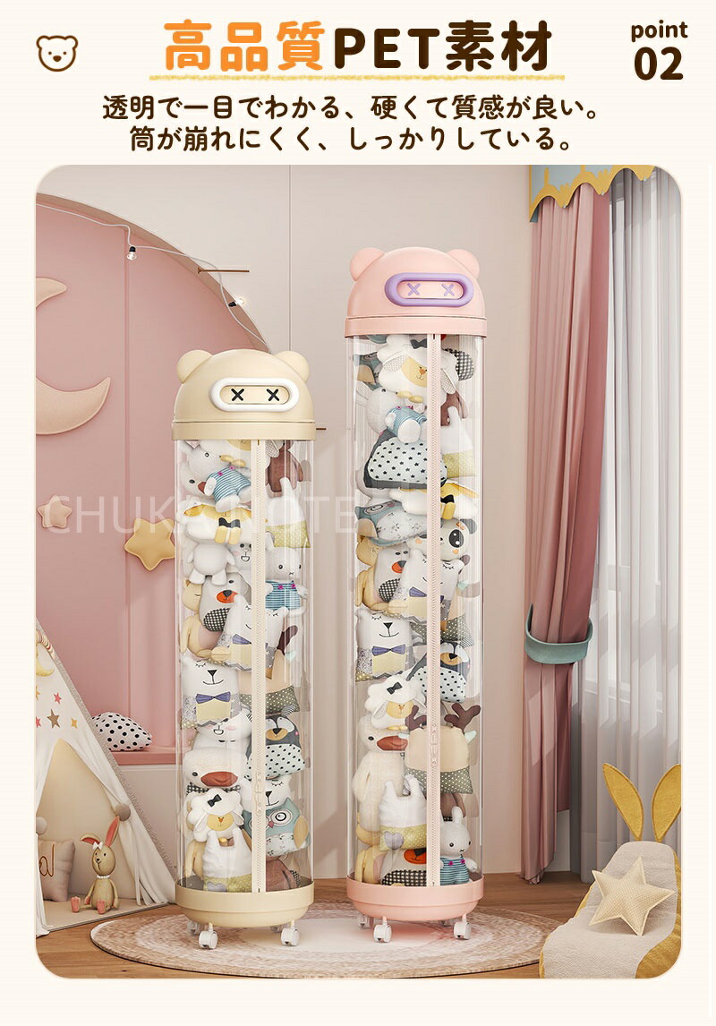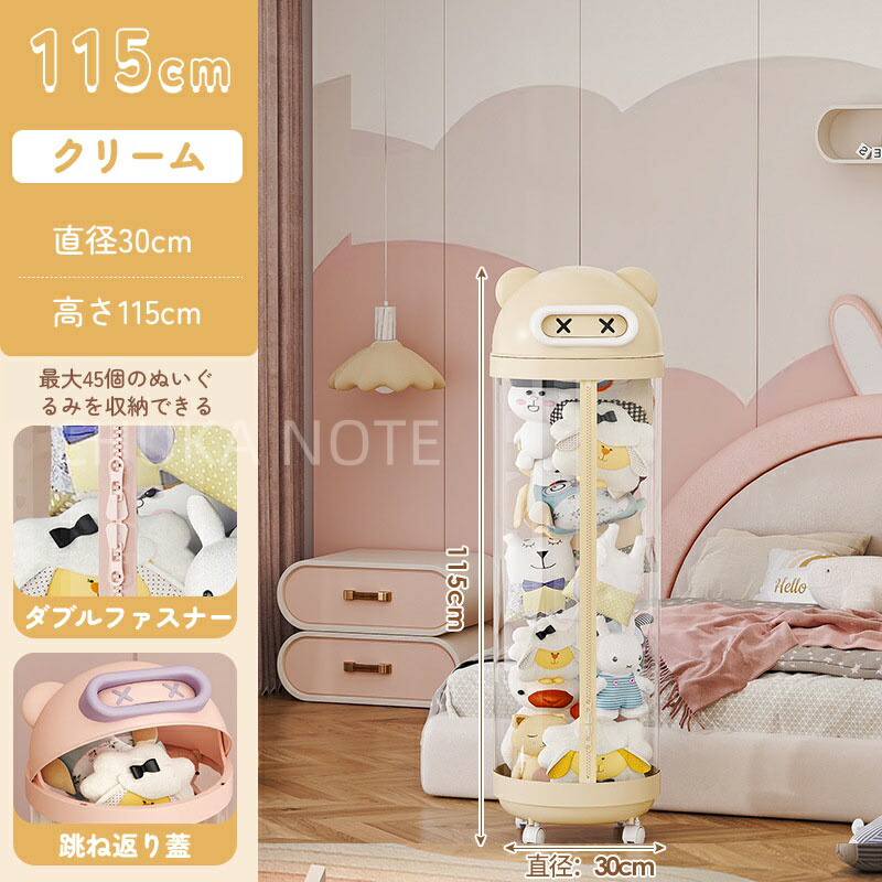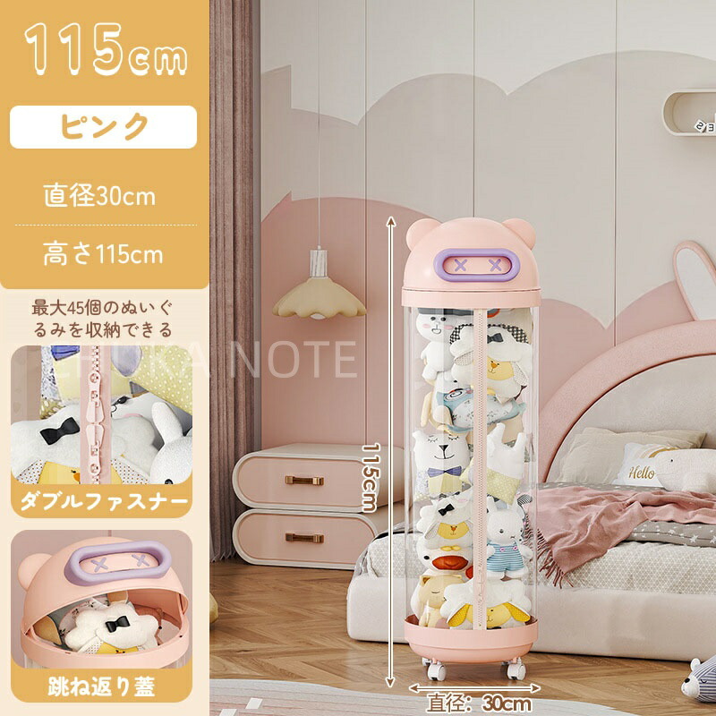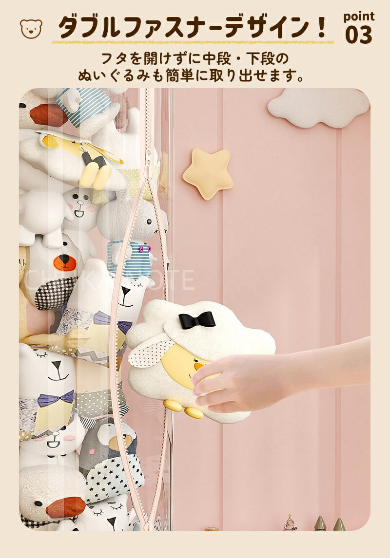 ぬいぐるみ 収納 ジッパータイプ 透明 ピンク クリーム 115cm 145cm 175cm