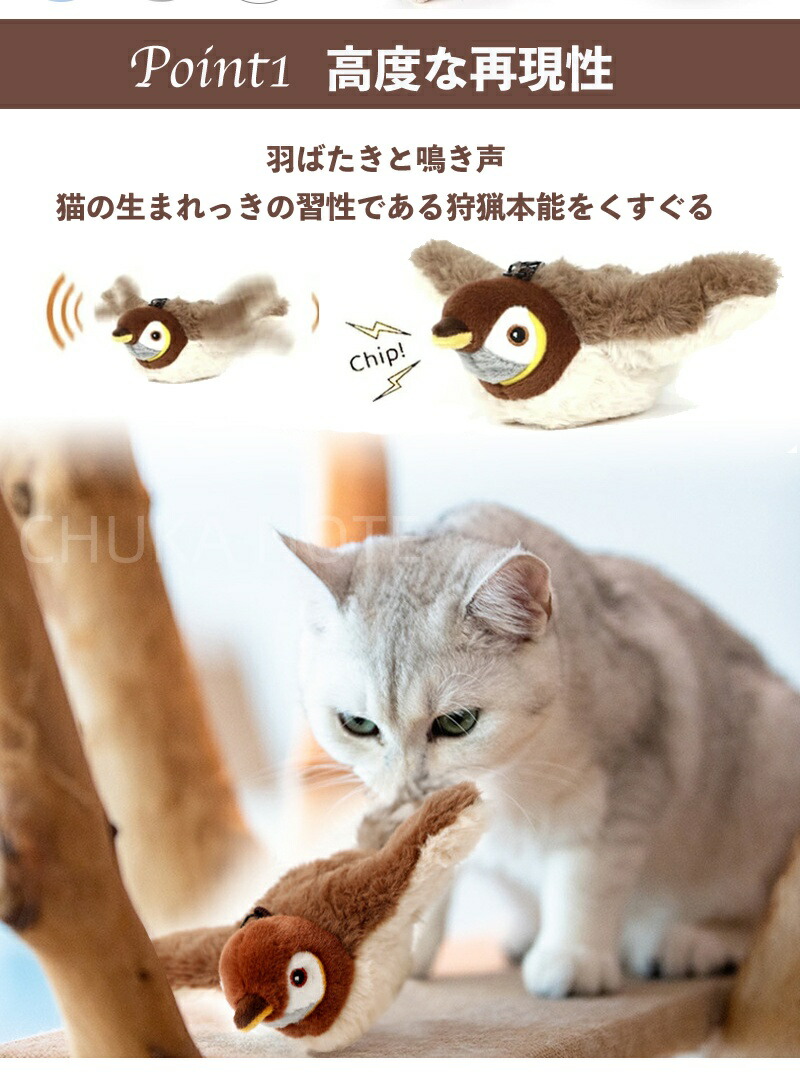 猫 おもちゃ 鳥 鳴く ストレス発散 タッチ起動 鳴き声 猫用おもちゃ ネコ リアル 遊ぶ 運動不足 猫じゃらし 電動羽ばたき スズメ シミュレーション 飛行鳥 猫が追いかけ 羽付き