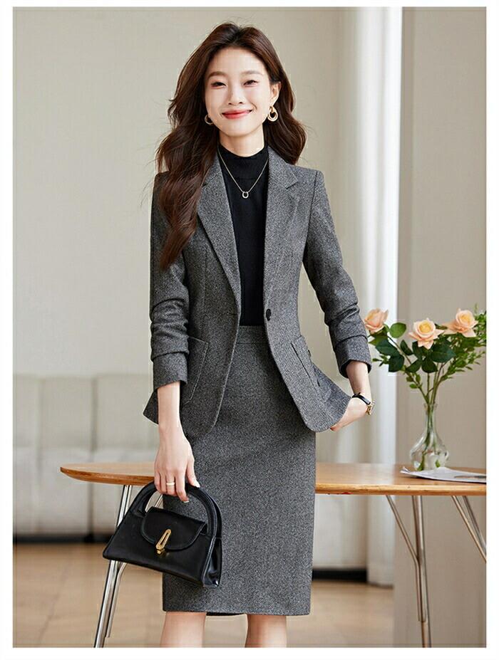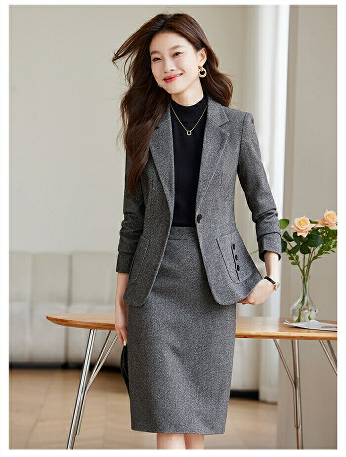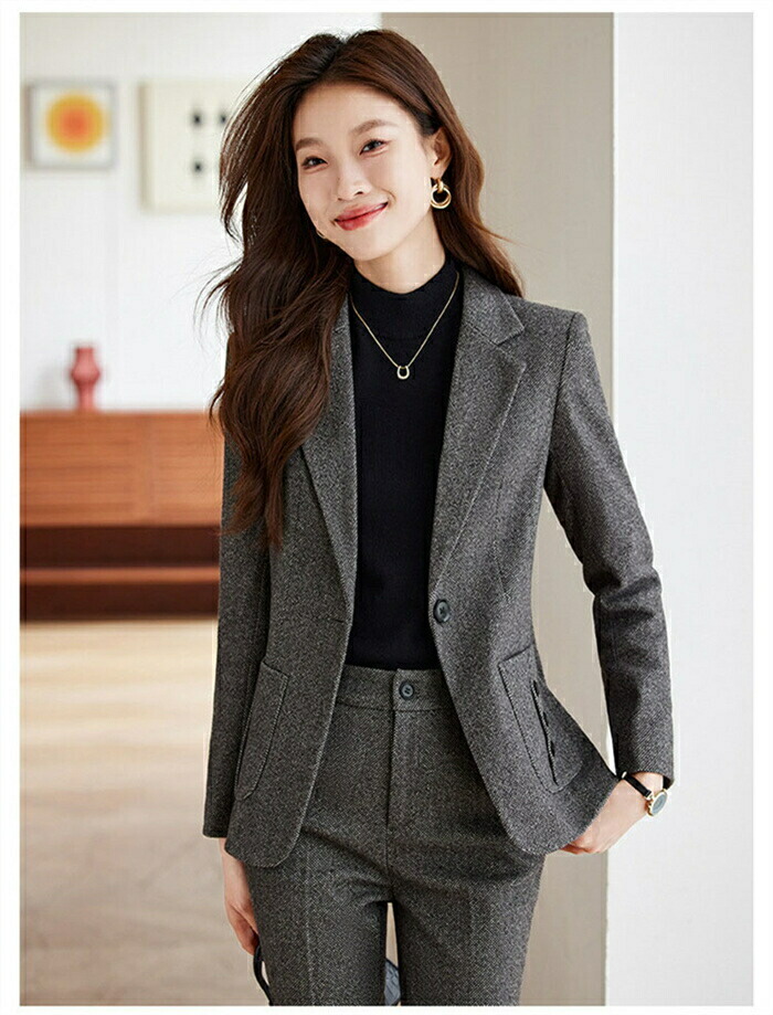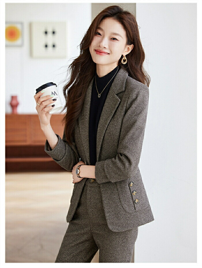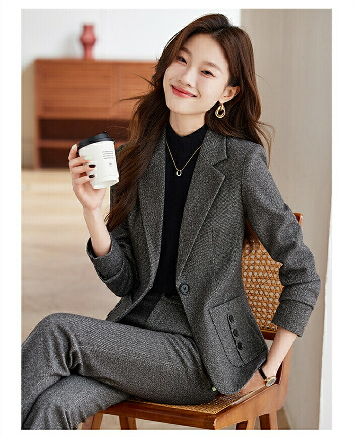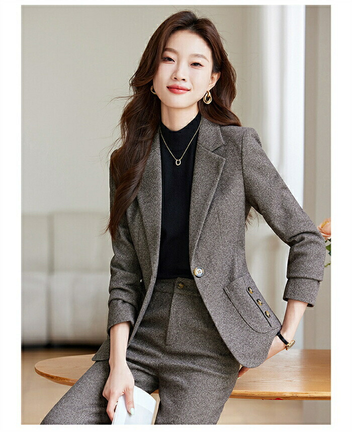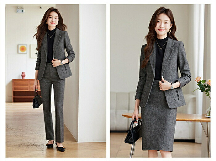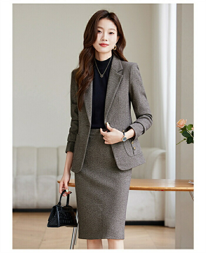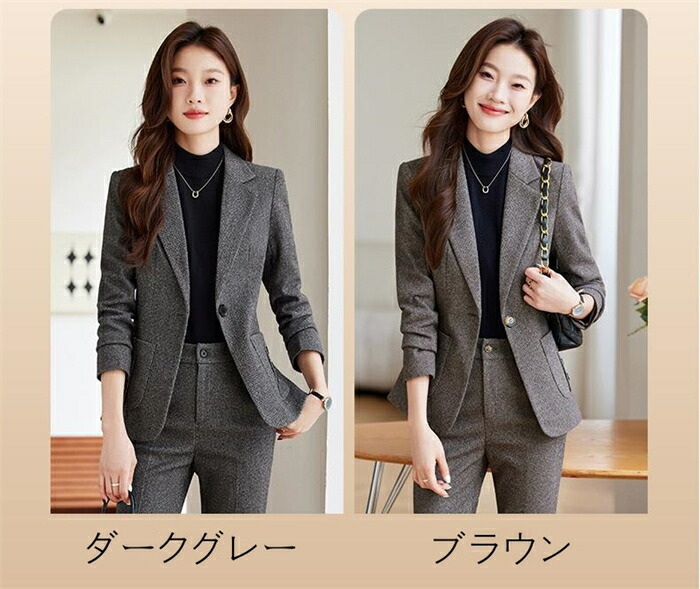 パンツスーツ スカートスーツ レディー レディースファッション 通販 ブラウン ダークグレー シャケット+パンツ シャケット+スカート