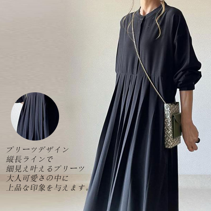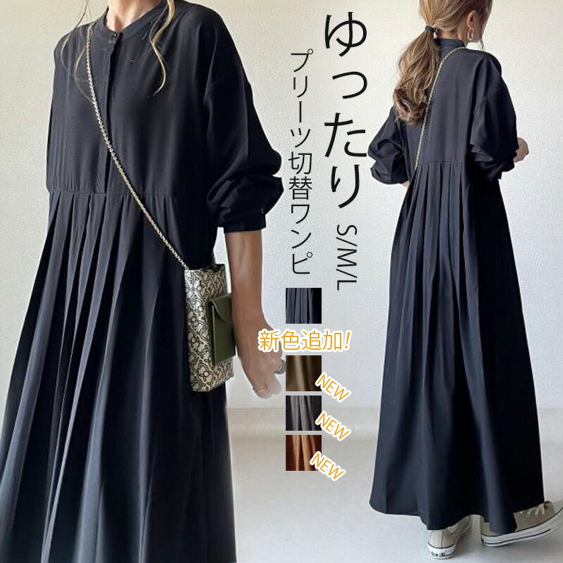 シャツワンピース 長袖 ワンピース レ ブラック 新色/コーヒー色 NEW・グレー NEW・キャラメル S M L