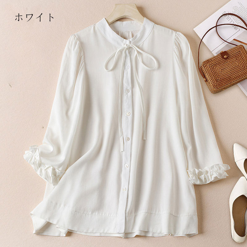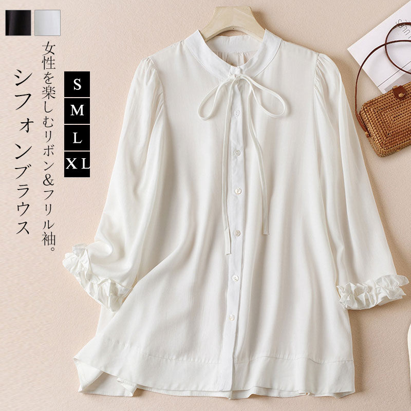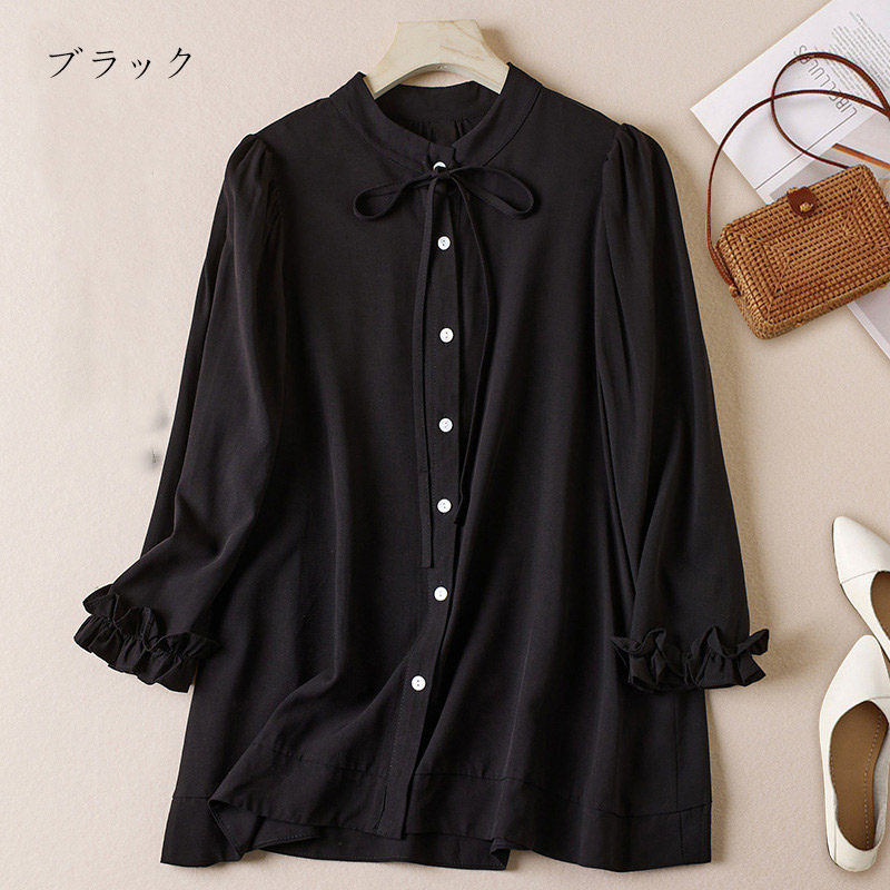 チュニック 七分袖 春 秋 シャツ ブ レディースファッション 新作 ホワイト ブラック S M L XL