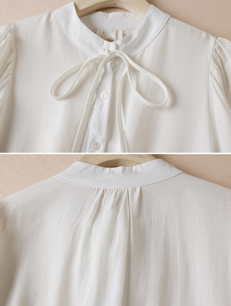 シアースリーブ ドッキングシャツ ボウタイシャツブラウス