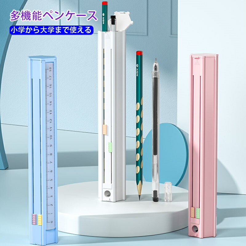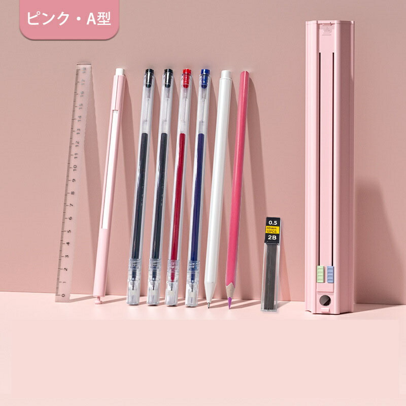 ペンケース 筆箱 スライド式 六角形 文具セット 筆6本 消しゴム 定規 鉛筆削り付き 文房具入れ 文具入れ コンパクト 軽い 取り出しやすい 整理 整頓 収納 学生 社会人 芯が折れにくい