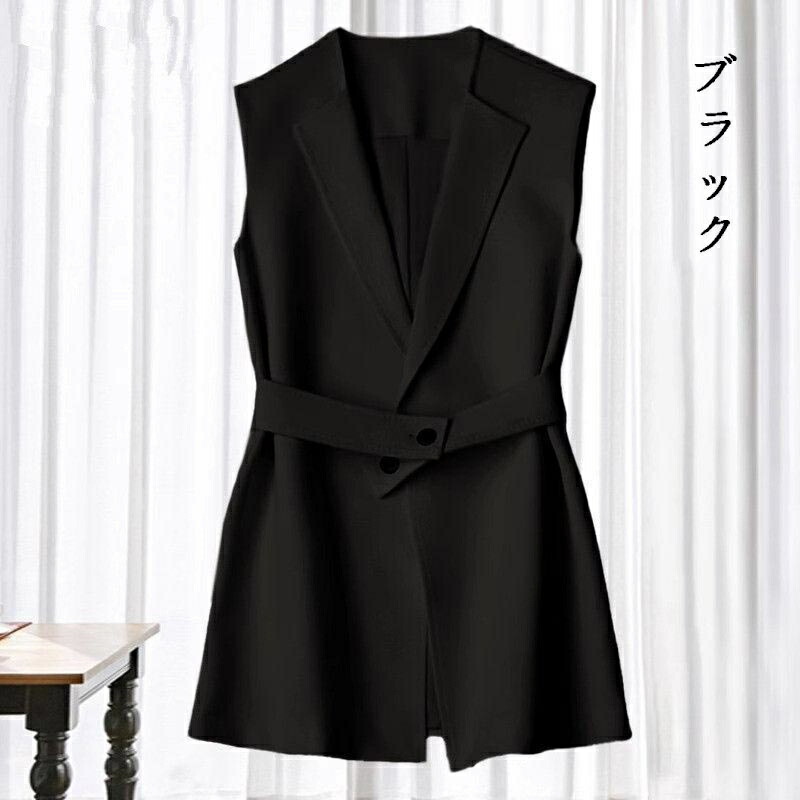 ロングベスト レディース ノースリーブ レディースファッション 豊富 ベージュ ブラック M L XL 2XL 3XL
