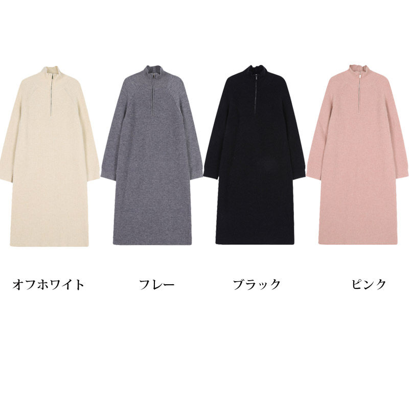 ロングワンピース 秋冬 長袖 ワンピー レディースファッション 続々登場 オフホワイト グレー ブラック ピンク