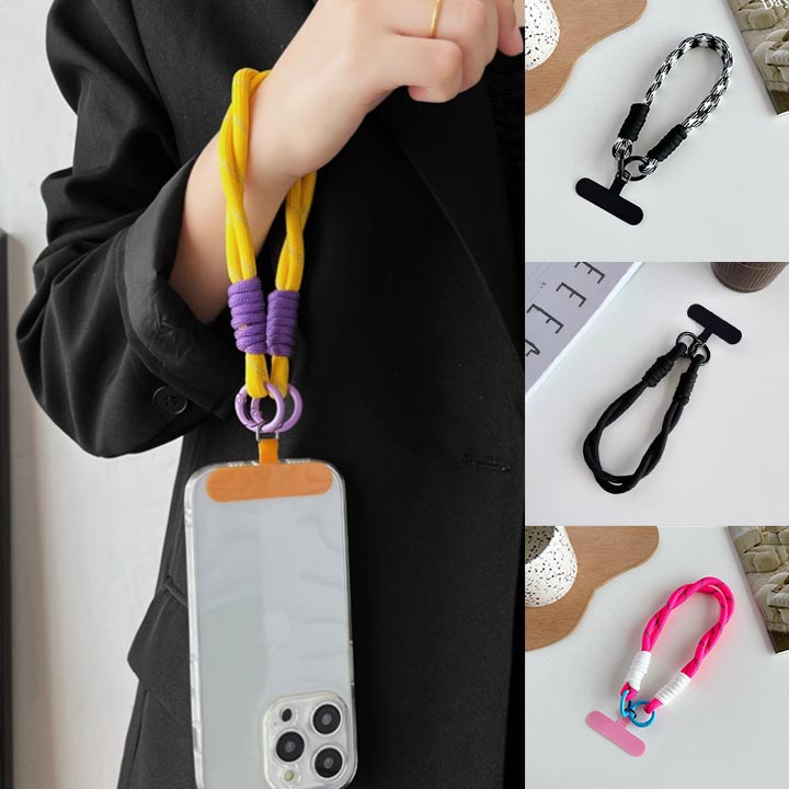 【2連デザイン全4カラー】スマホ ハンドストラップ スマフォ 携帯 iPhone Galaxy ストラップ ストラップ ロープ 紐 手提げ ビタミンカラー ブラック モノトーン バイカラー ツートン カジュアル おしゃれ アウトドア 落下防止 旅行 便利 スマホ雑貨