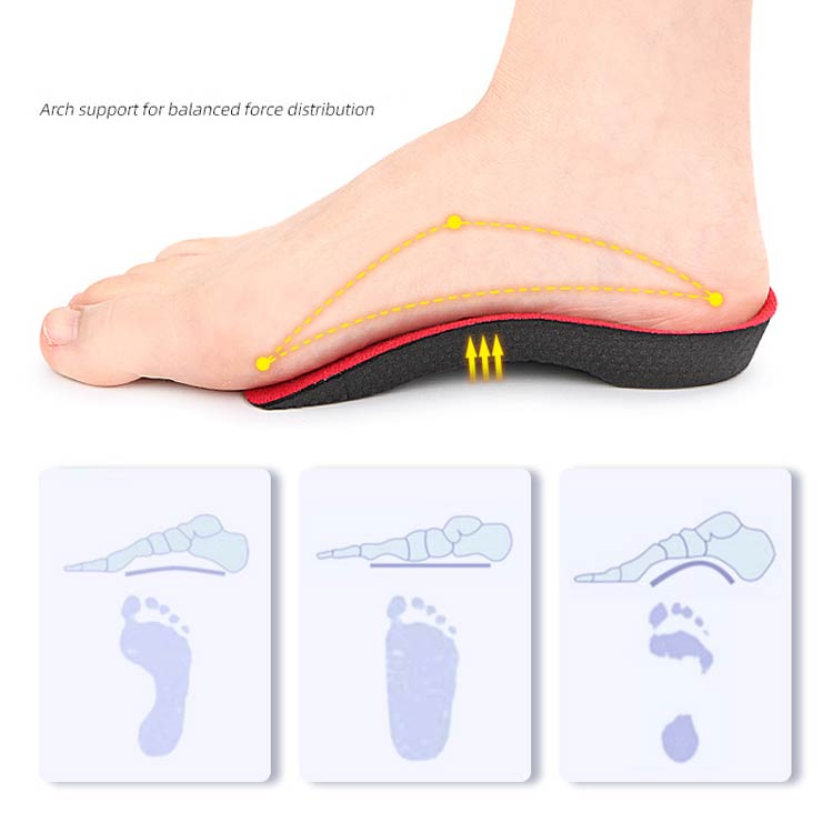 足弓支撑:扁平足や足底筋膜炎の痛みを和らげ、歩行を改善します。