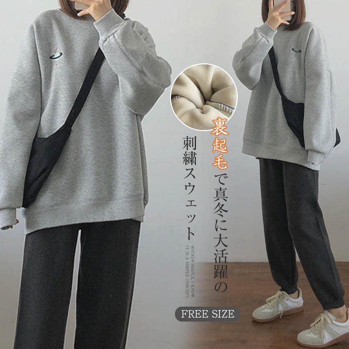 厚手 スウェット レディース 裏起毛 トップス スウェット トレーナー 特集 グレー ブルー