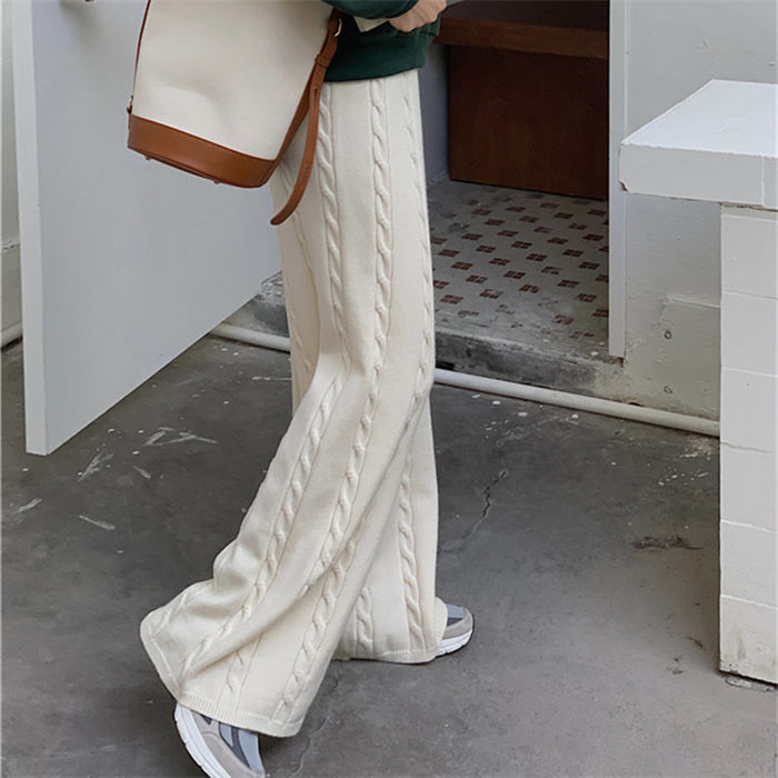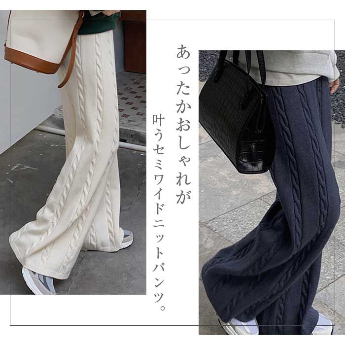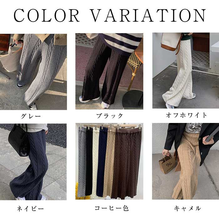 ワイドパンツ ニット レデ一部ィース ボトムス パンツ 超目玉商品 オフホワイト ブラック キャメル コーヒー色 グレー ネイビー