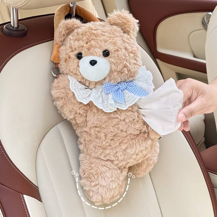 ティッシュケース クマ ぬいぐるみ 車 吊り下げ おしゃれ かわいい 熊 車用 ティッシュカバー もこもこ 動物 キャラクター 壁掛け 収納 縦型 アームレスト 助手席 サンバイザー ヘッドレスト