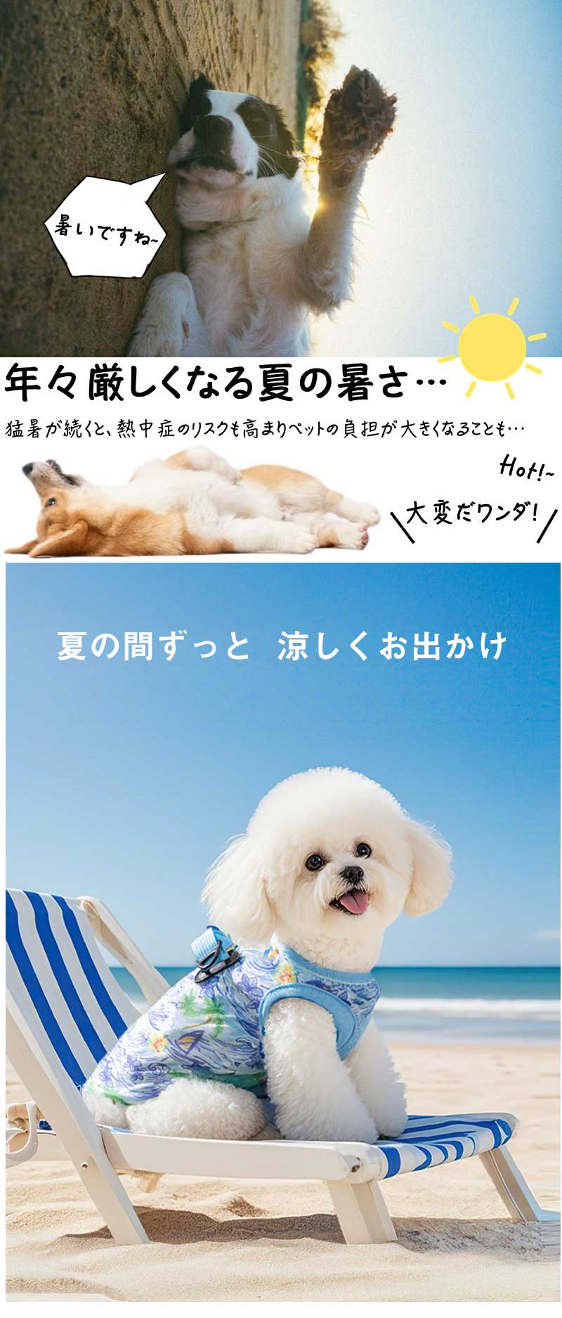 犬服 春 夏 クールベスト 水で濡らす 冷却ベスト 小中大型犬 冷感服 背中開き ハーネス付き ドッグウエア 薄手 通気性 熱中症対策 お出かけ お散歩 ペット用品 日焼き防ぐ