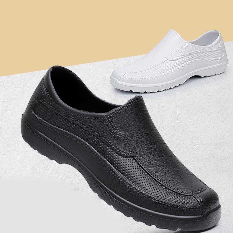 防水仕様のため、厨房や水回りでも安心して使用できます。耐滑底がしっかりと足元を支え、滑りにくいため、急な動きや水滴で滑る心配もありません。