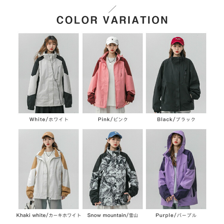 マウンテンジャケット マウンテンパーカ ホワイト ピンク ブラック カーキホワイト 雪山 パープル M L XL 2XL 3XL 4XL 5XL
