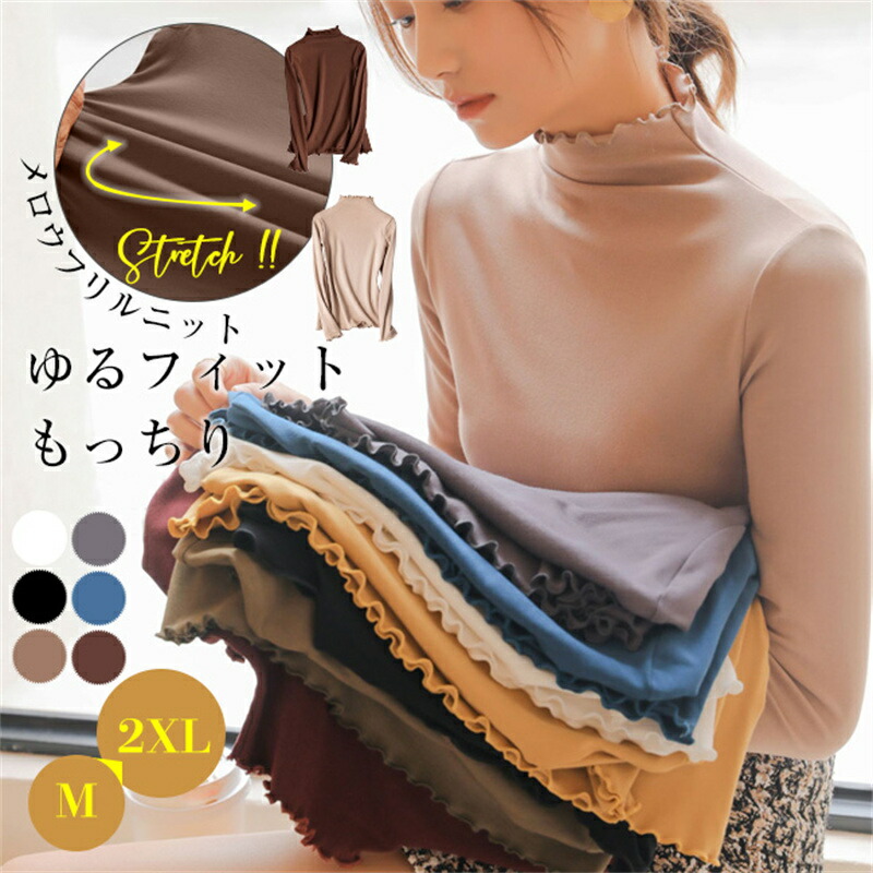 カットソー メロウネック 微起毛 イン トップス Tシャツ カットソー 特集 ブラック キャメル ホワイト グレー コーヒー ブルー M L XL 2XL