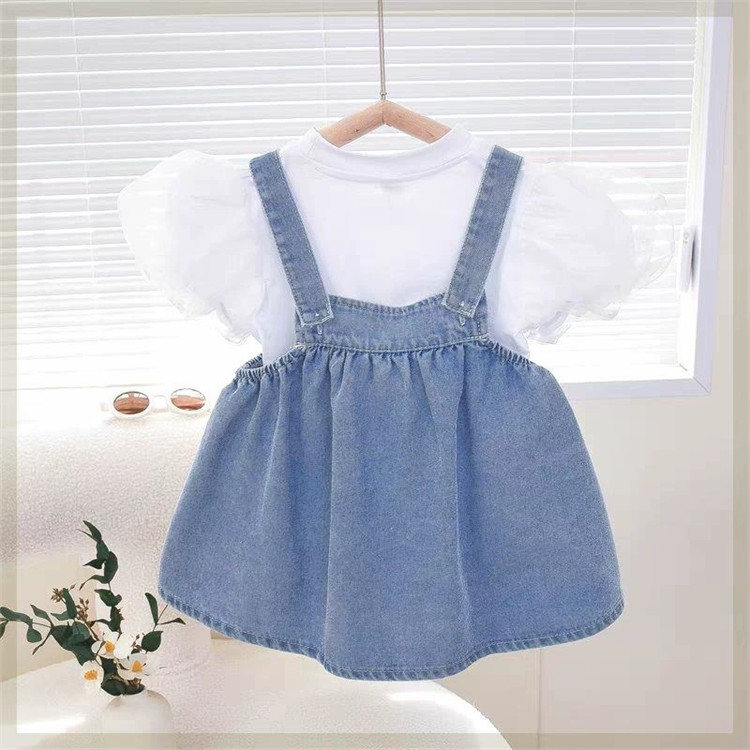 ベビー ワンピース 夏 赤ちゃん ドレス 半袖 Tシャツ ジャンパースカート サロペット スカート デニムワンピース ベビー服 子供服 セットアップ 2点セット キッズ 韓国子供服 上下セット 誕生日 出産祝い 写真撮影 春夏 通学着 通園着 80cm 90cm 100cm 110cm 120cm 130cm
