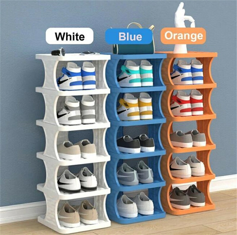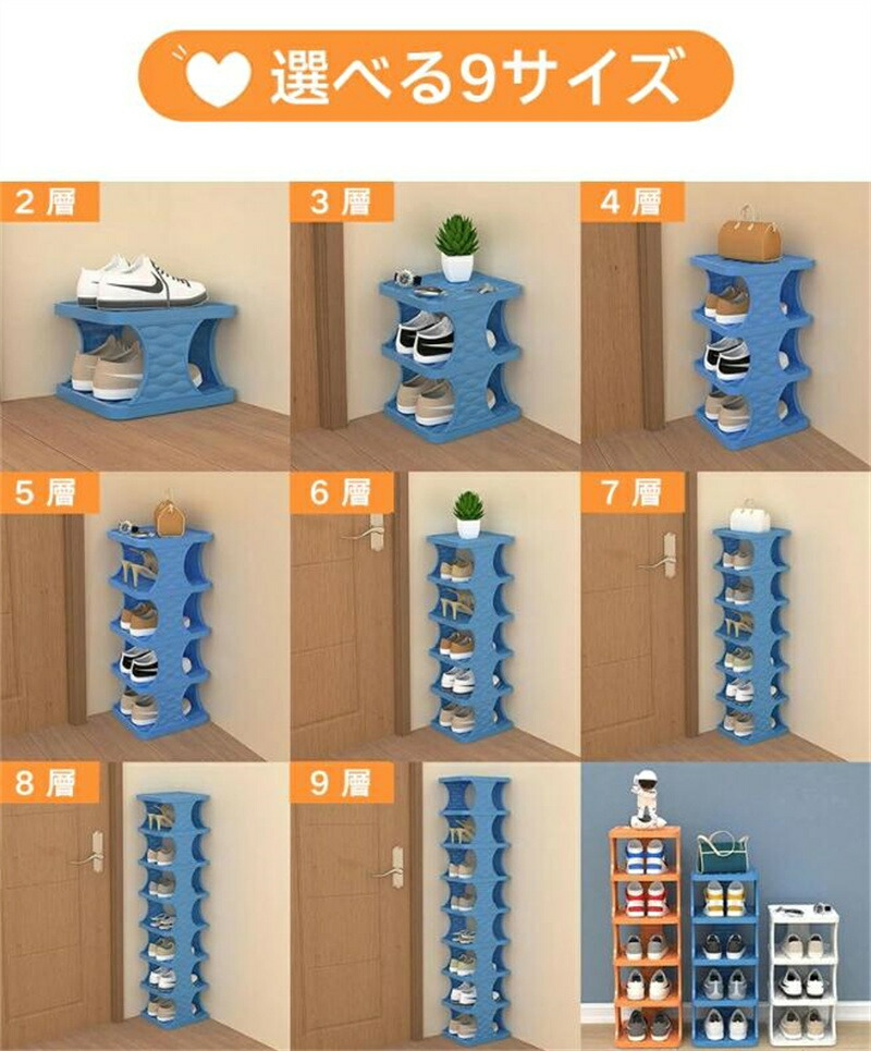 スリム シューズラック 2段-9段 下 ホワイト オレンジ ブルー 2層 3層 4層 5層 6層 7層 8層 9層