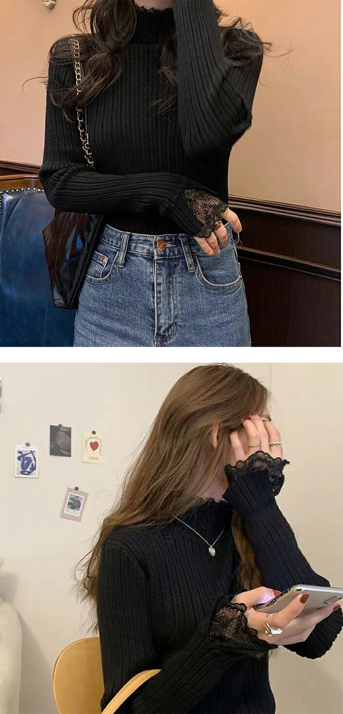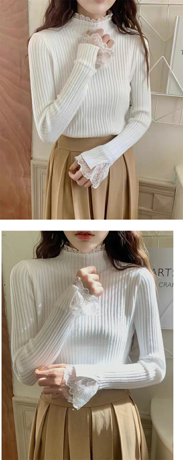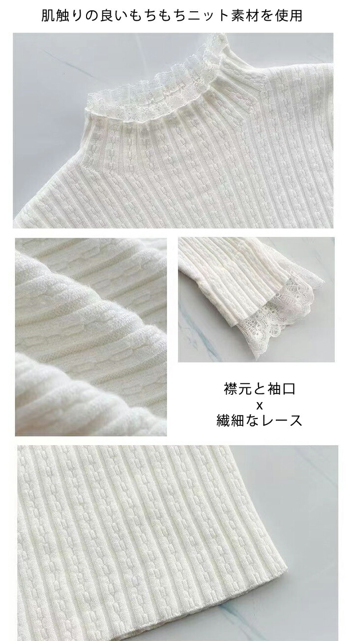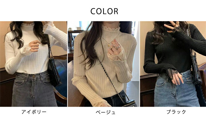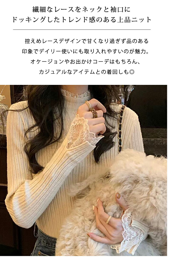 ニット 袖レース 2A45 ハイネック レディースファッション 早い者勝ち ホワイト ベージュ ブラック