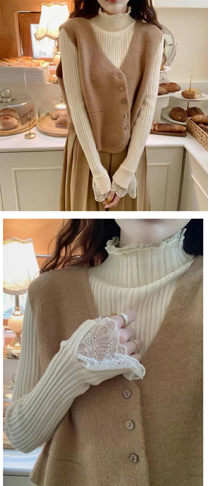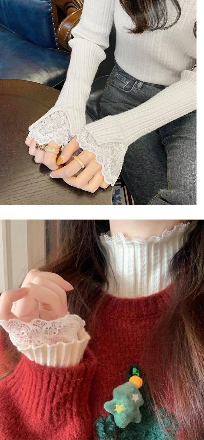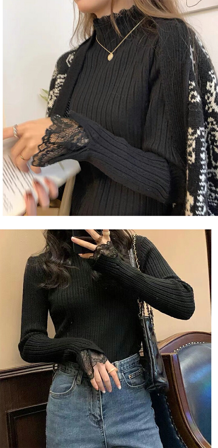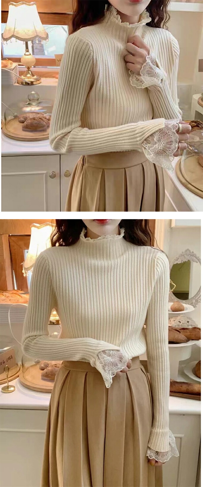 ニット 袖レース 2A45 ハイネック レディースファッション 早い者勝ち ホワイト ベージュ ブラック
