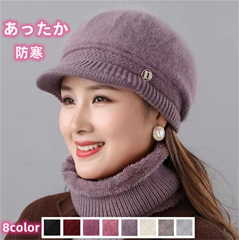 帽子 レディース 秋冬 母 おばあちゃ バッグ 小物 ブランド雑貨 通販 ブラック ダークパープル ライトパープル ワイン ピンク ベージュ オフホワイト グレー 帽子 帽子+ネックウォーマー