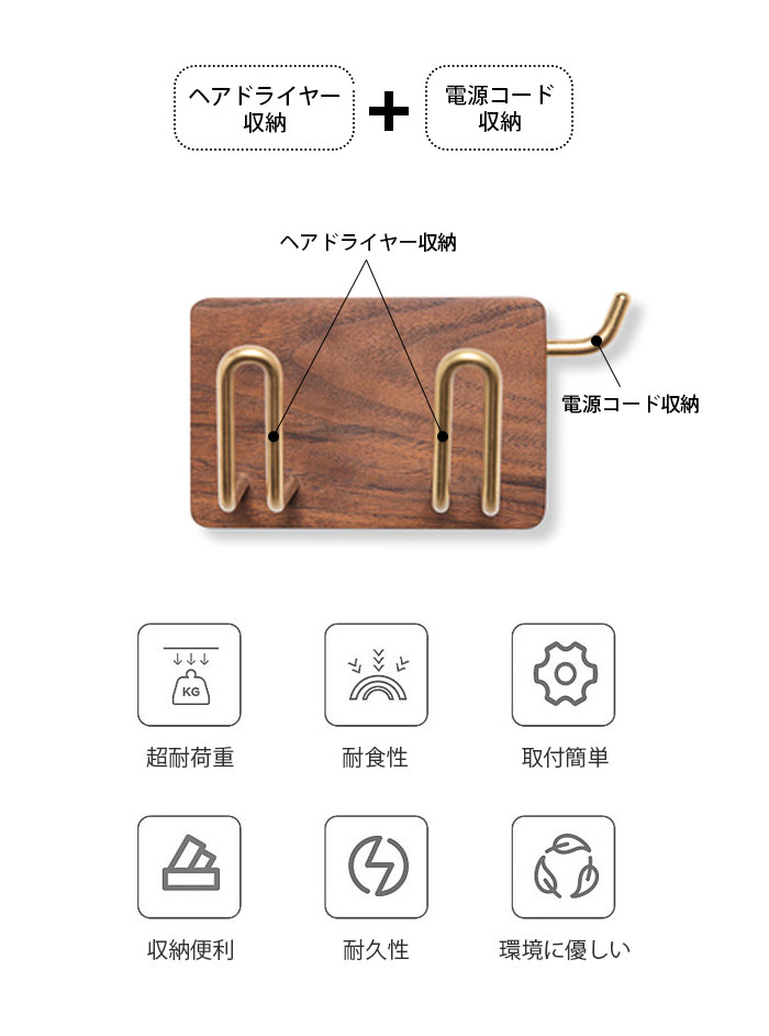 ドライヤー置き ヘアドライヤーホルダー 電源コード収納 ドライヤーホルダー 壁掛け式 黒クルミ 木製 真鍮 ヘアドライヤーホルダー 洗面 収納 ドライヤー入れ ヘアドライヤー置き 耐久性 錆びにくい バス用品 高品質素材 機能性 取付簡単 高級感 豪華感天然木製 黒クルミ 洗面所 絶妙なデザイン 自宅用 美容室 温泉 プレゼント 引越し 内装 インテリア 収納 小物 お手洗い 一人暮らし