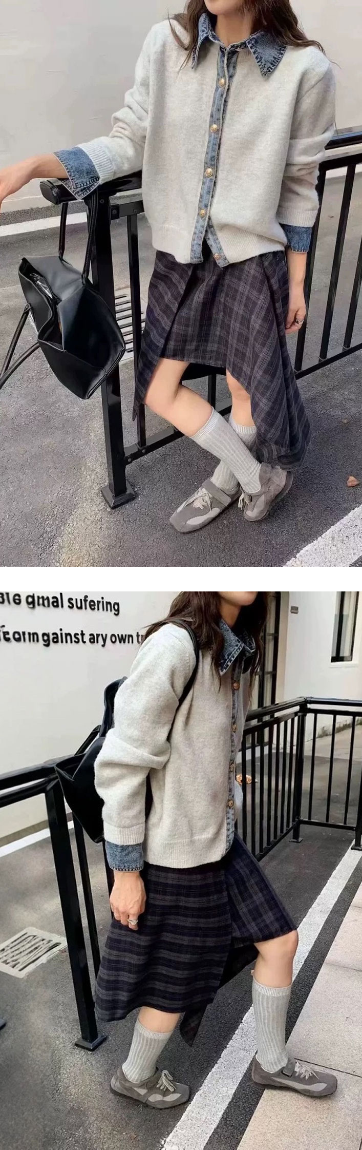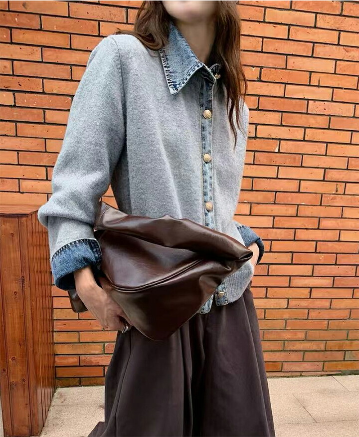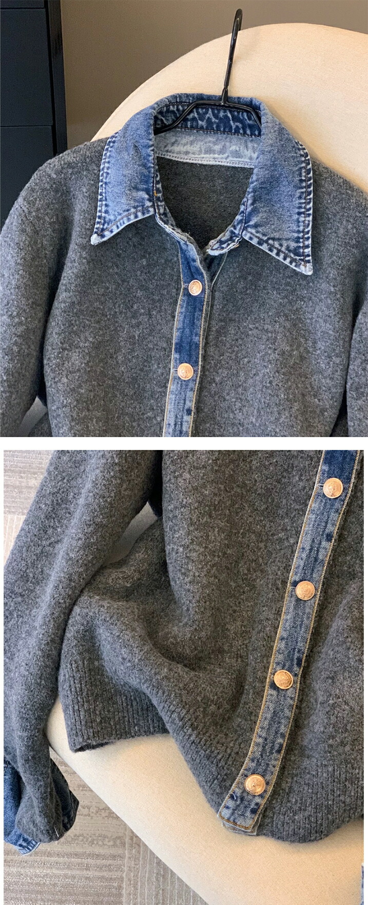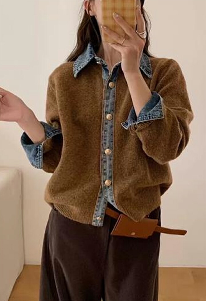 3A44 デニム切り替え ニットカーデ トップス カーディガン ボレロ 早い者勝ち グレー ダークグレー ブラウン ネイビー ライトグレー