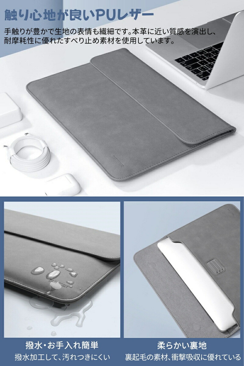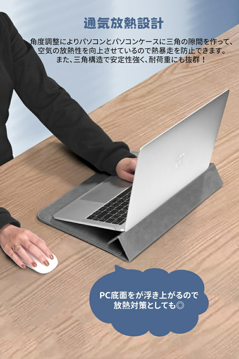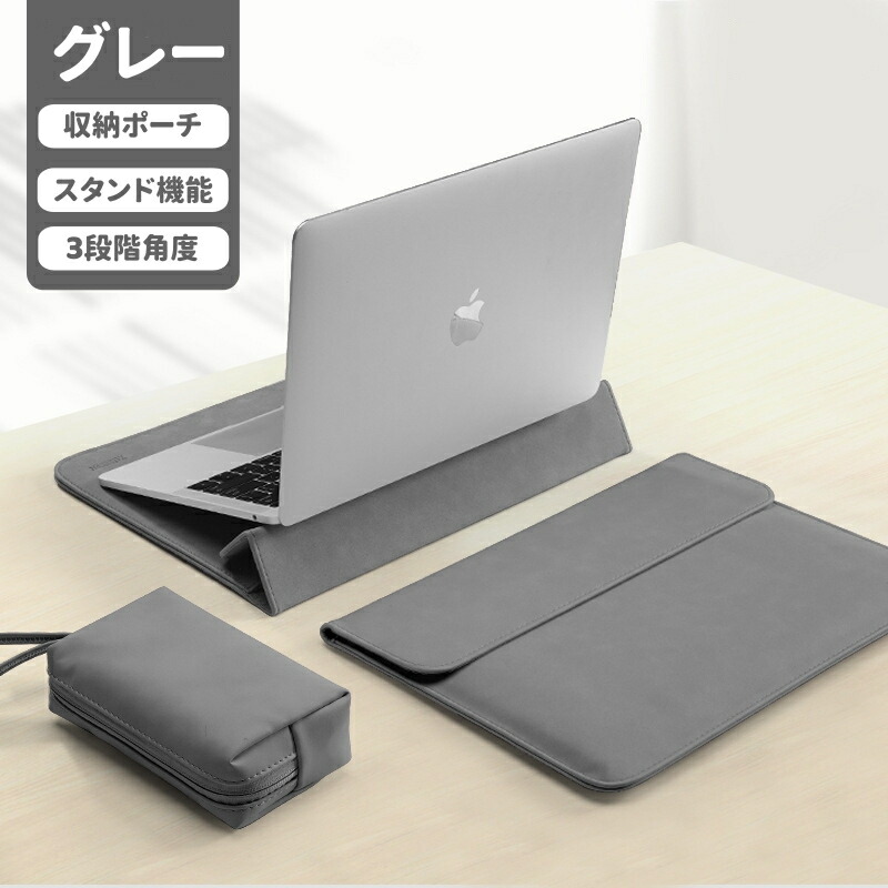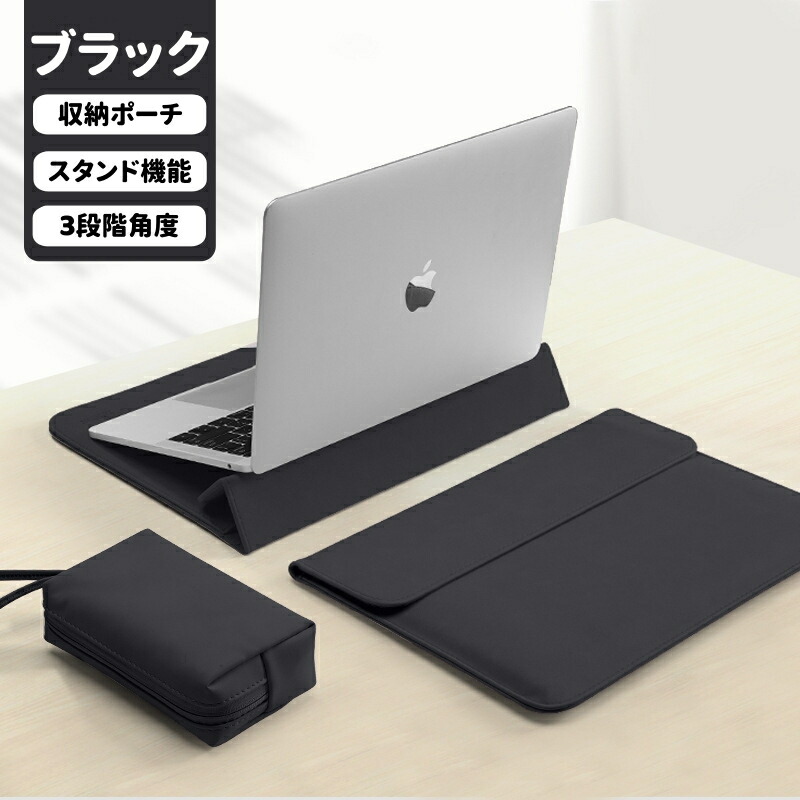 パソコンケース ノートPCケース スタンド機能 ラップトップケース 3段階調節 多機能 撥水 耐衝撃 薄型 パソコンバッグ 多機種対応 マウスパッド PUレザー軽量 PCバッグ タブ 電源収納ポーチ付