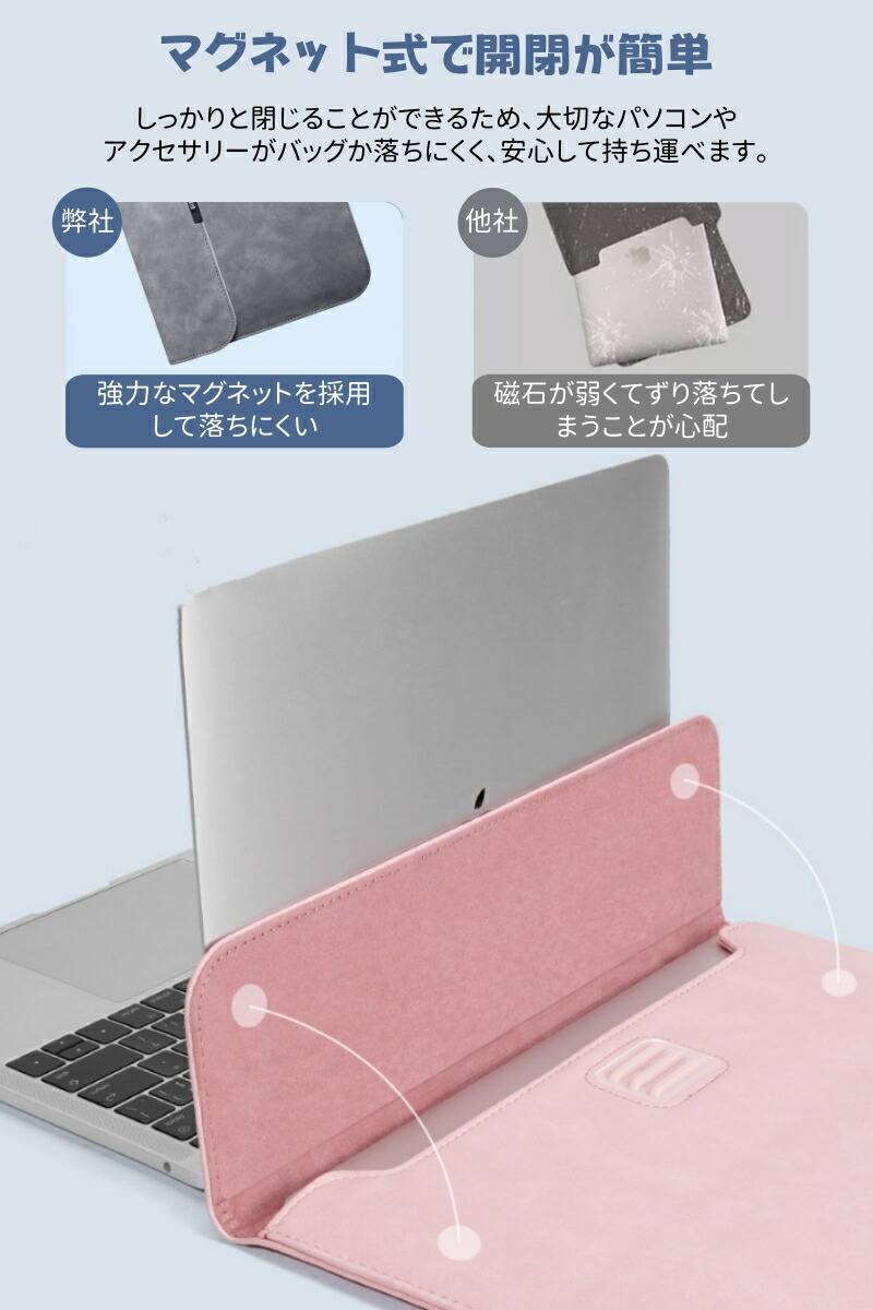 ◆保護ケースの蓋とケースにマグネットを各3枚内蔵され折り、マグネット式だから開閉便利、ファスナーやボタンなどの面倒くさいと感じなく、macbookを出し入れる時にも楽になります。