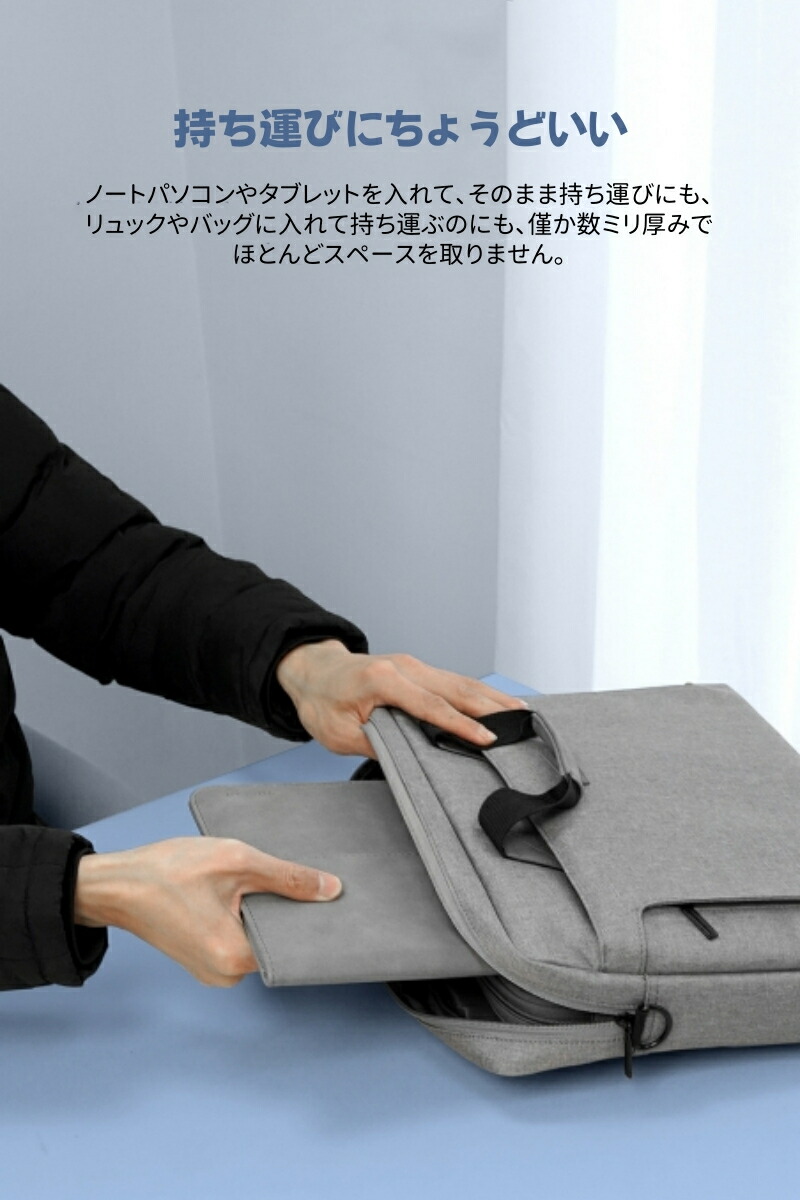 ◆ノートパソコンやタブレットを入れてそのまま持ち運びにも、リュックやバッグに入れて持ち運ぶのにも、わずか数ミリ厚みでほとんどスペースを取りません。