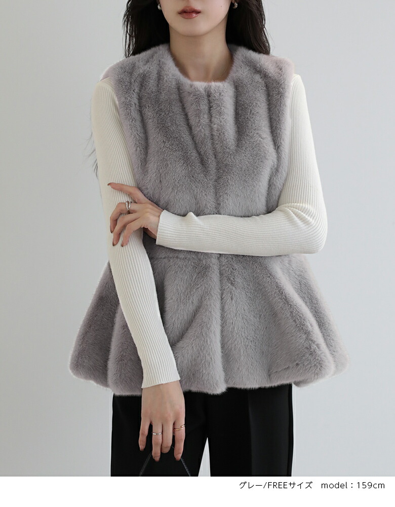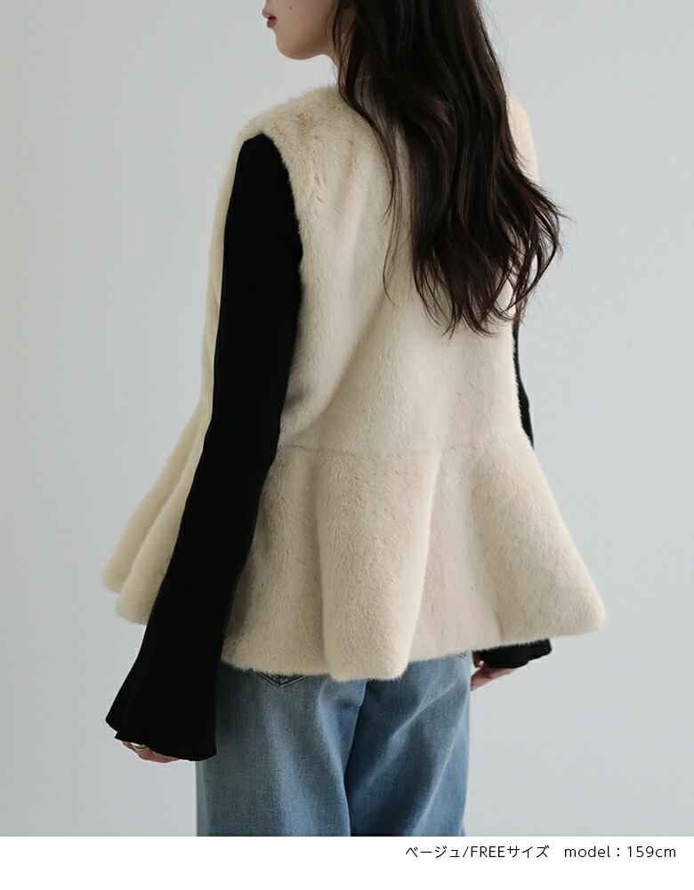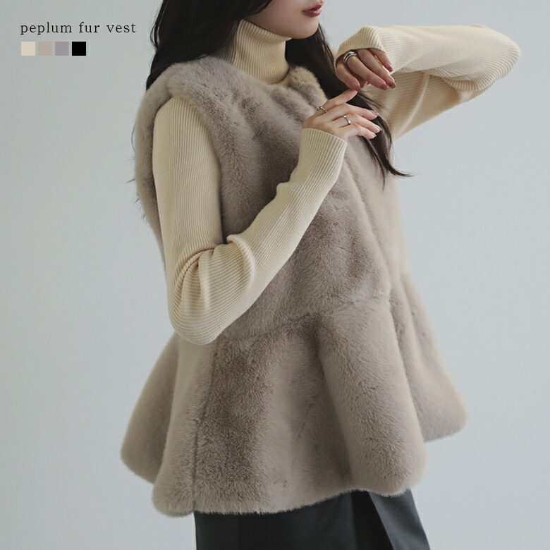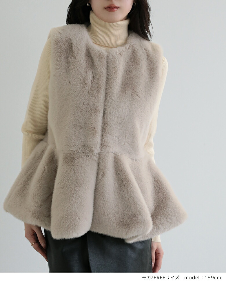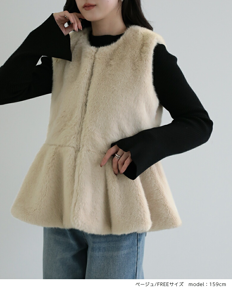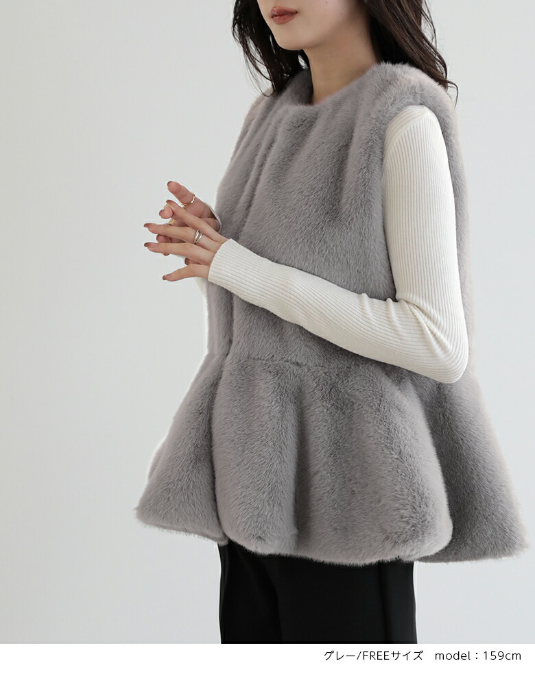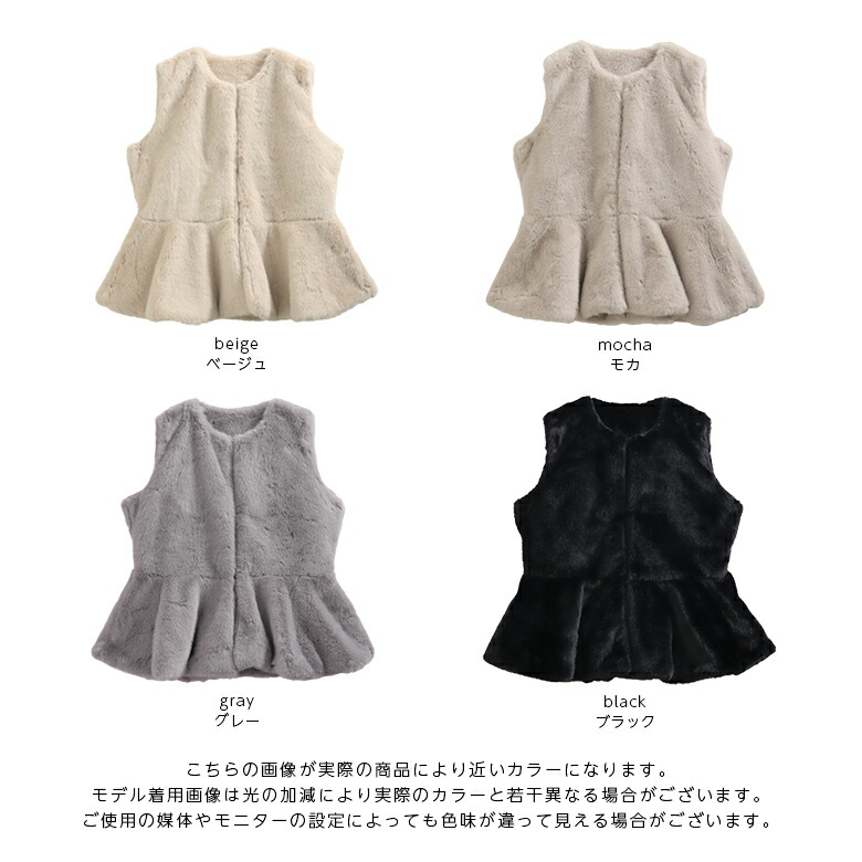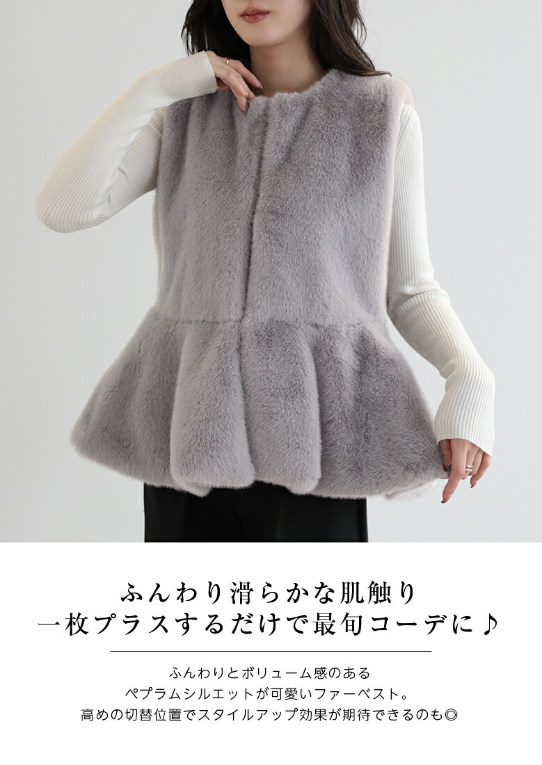 ふわふわ ペプラムファーベスト 3B レディースファッション 早い者勝ち ベージュ モカ グレー ブラック