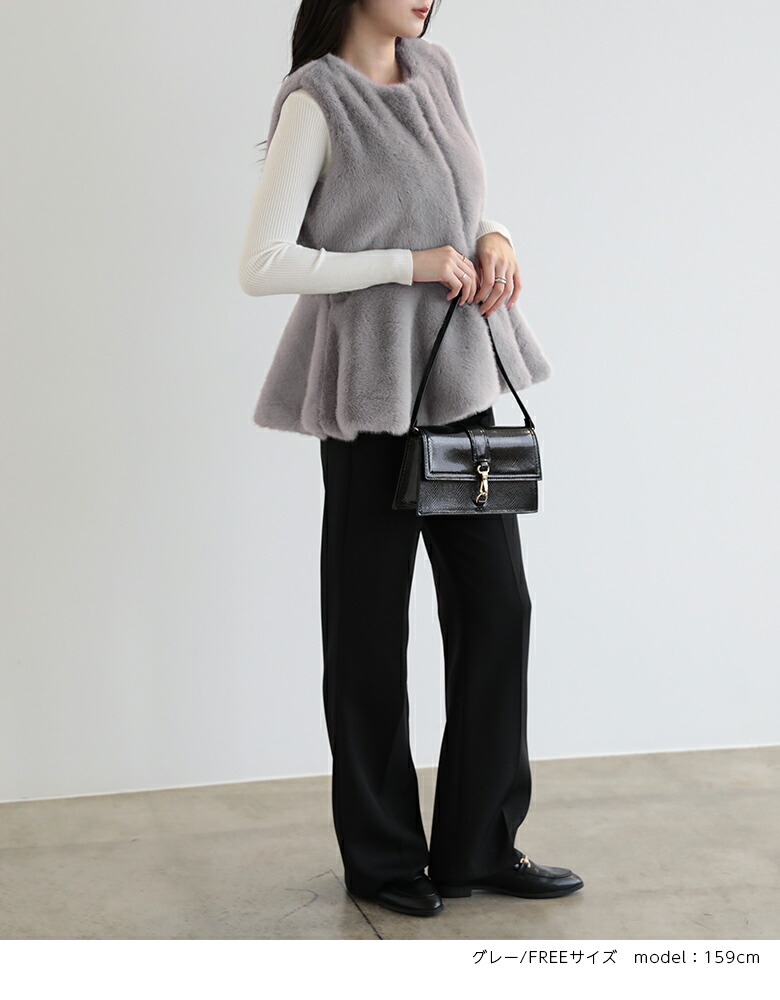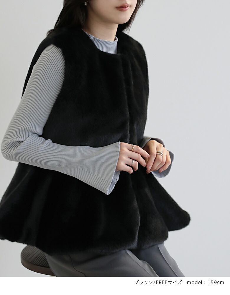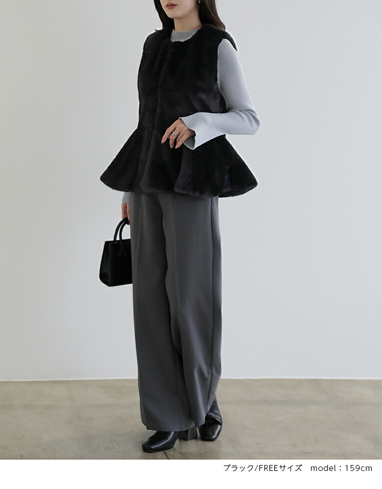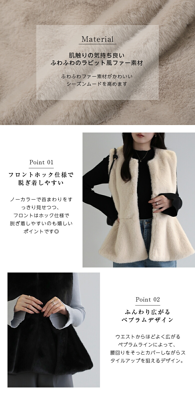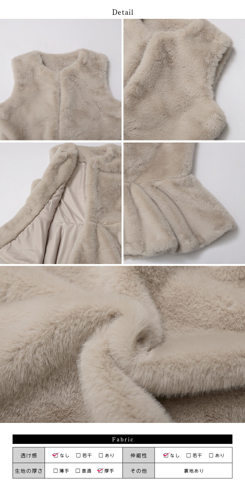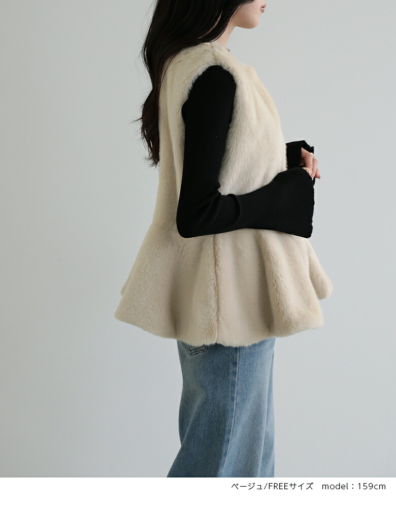 ふわふわ ペプラムファーベスト 3B レディースファッション 早い者勝ち ベージュ モカ グレー ブラック